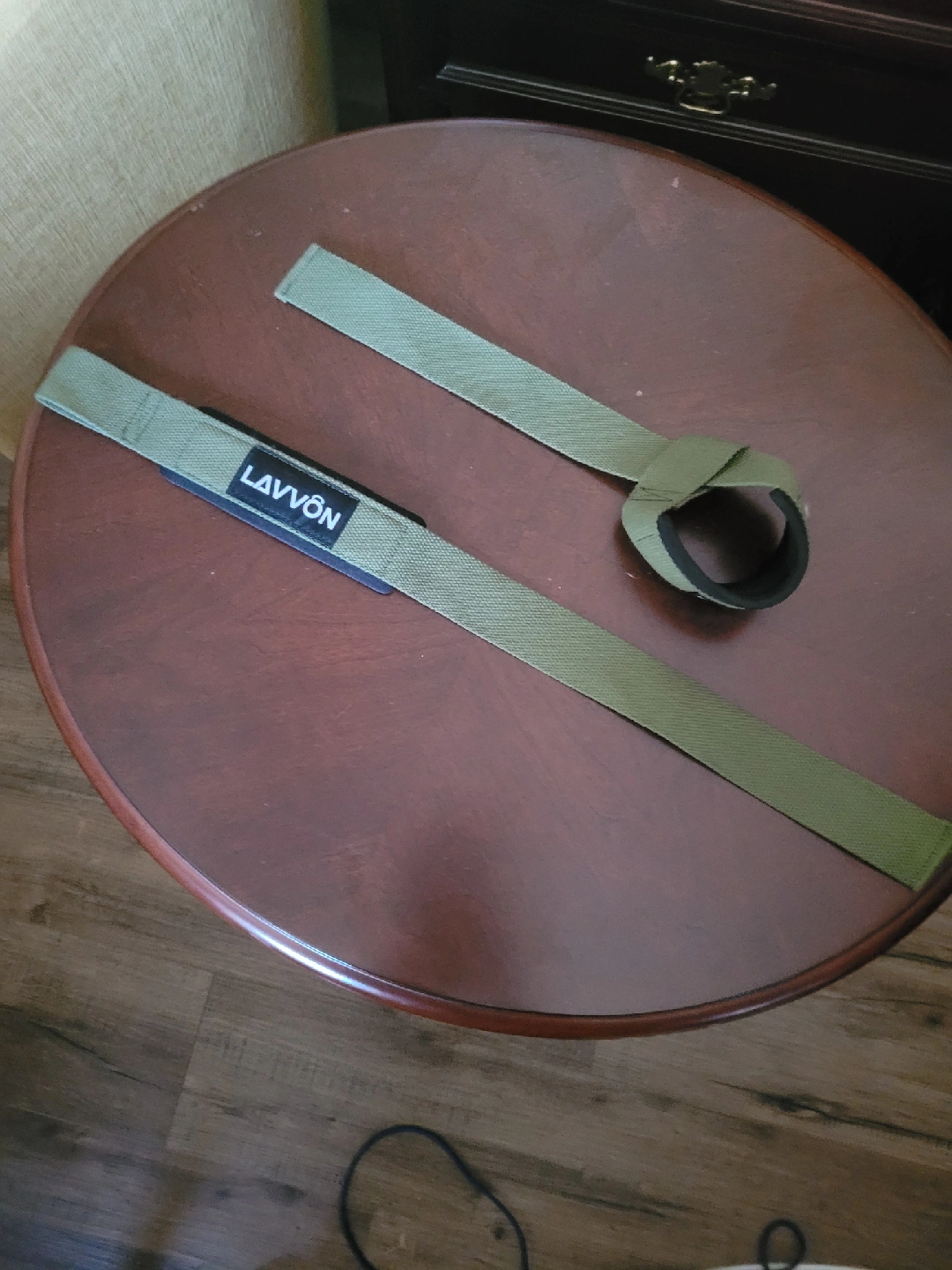 Selling a pair of LAVVON weight lifting straps in olive green. They are in great condition and ready to help you lift heavier!
