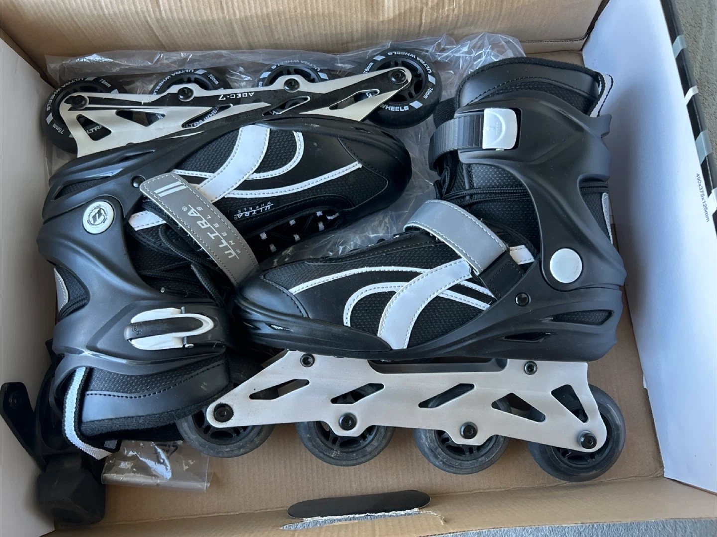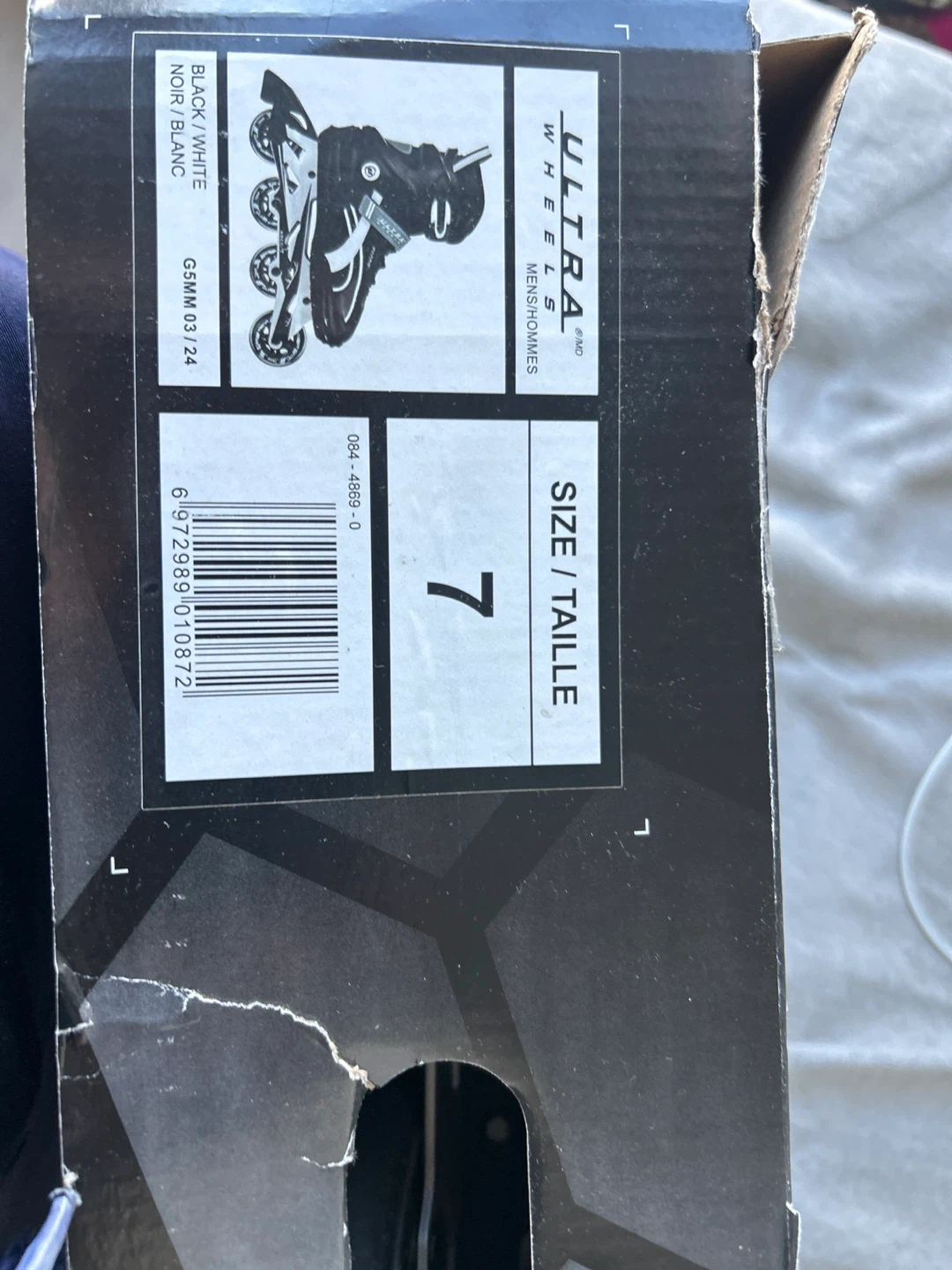 10Selling a pair of Ultra Wheels men's rollerblades in size 7! They're black and white and come in the original box. Great for some outdoor fun!