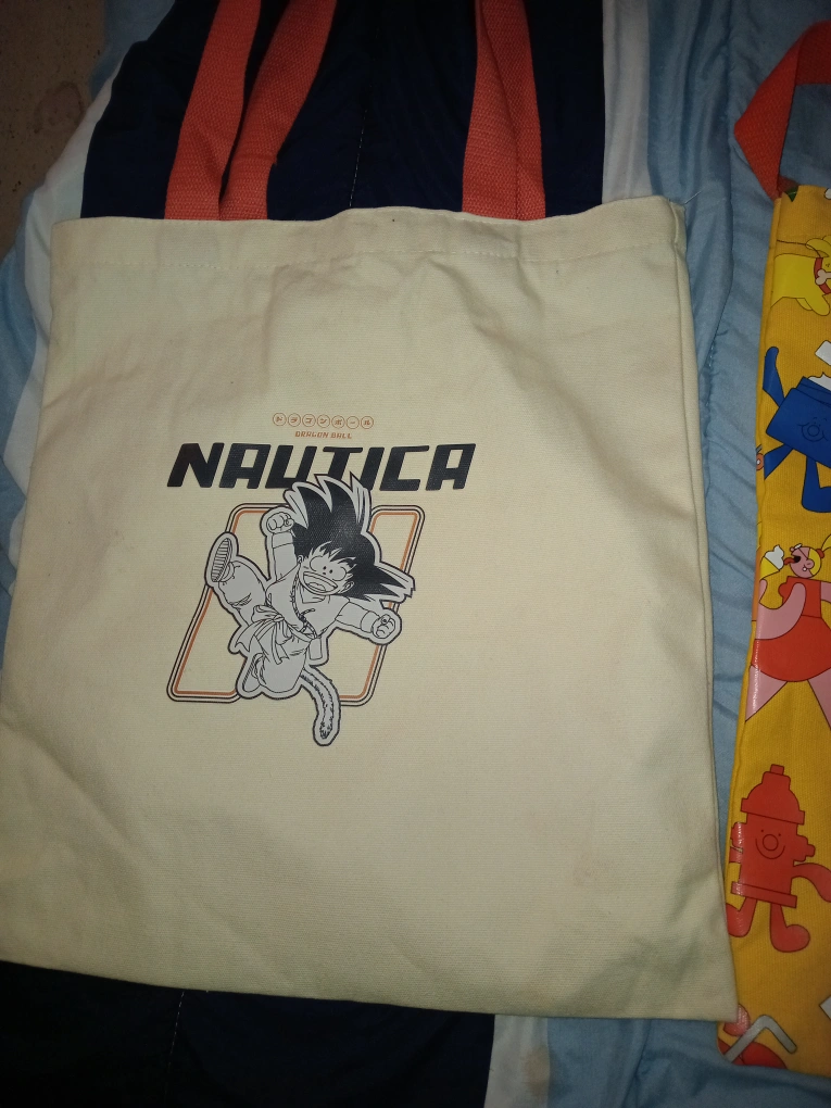 Nautica tote bag featuring a Dragon Ball Z design! It's a great bag for everyday use, showing off your love for both brands. There are some signs of use, but it's still in good condition and ready for a new home