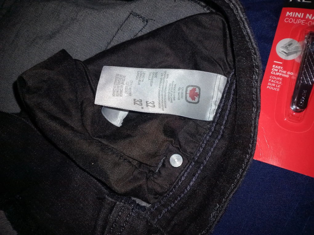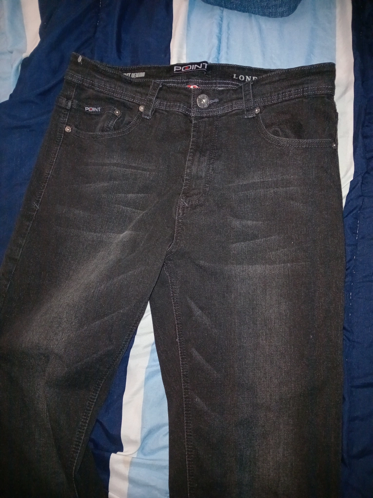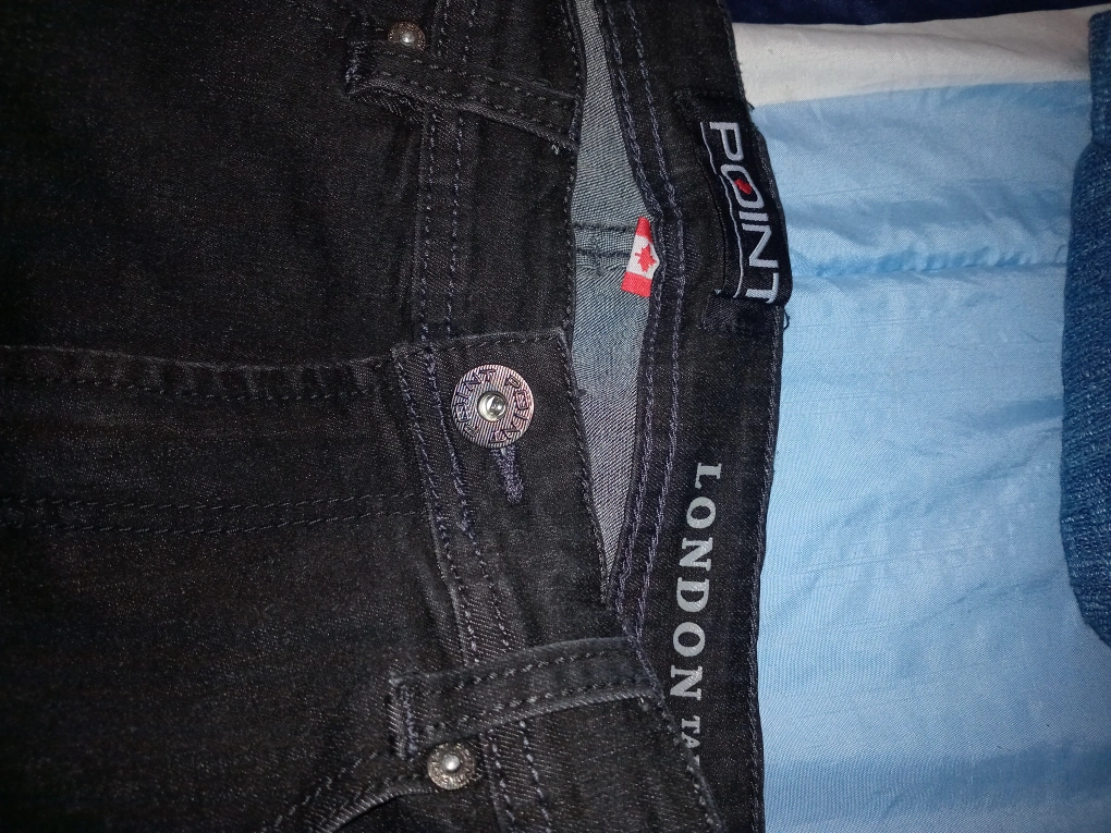 Selling a pair of Point Zero London jeans in size 32. They are in good condition and made from a blend of 80% cotton, 18% polyester, and 2% spandex. These jeans are designed in Canada!