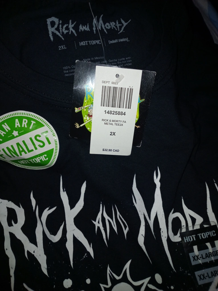Selling a brand new Rick and Morty t-shirt from Hot Topic. It's a size 2XL and features a cool graphic design. The tag shows it was originally $32.90 CAD. Never worn!