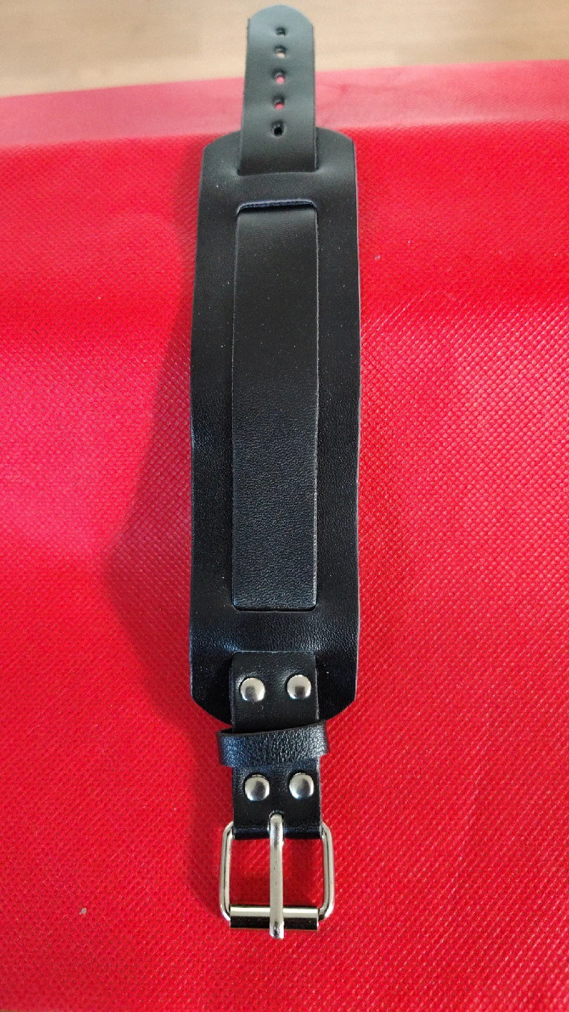 Selling a black leather cuff wristband. It's in great condition and ready for a new home! The wristband is made of leather and features a buckle closure
