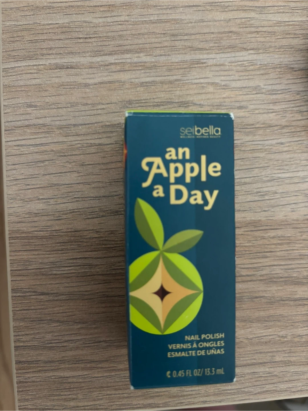Here's a bottle of Selbela nail polish in the An Apple a Day colour! It's 0.45 fl oz / 13.3 mL and comes with the box