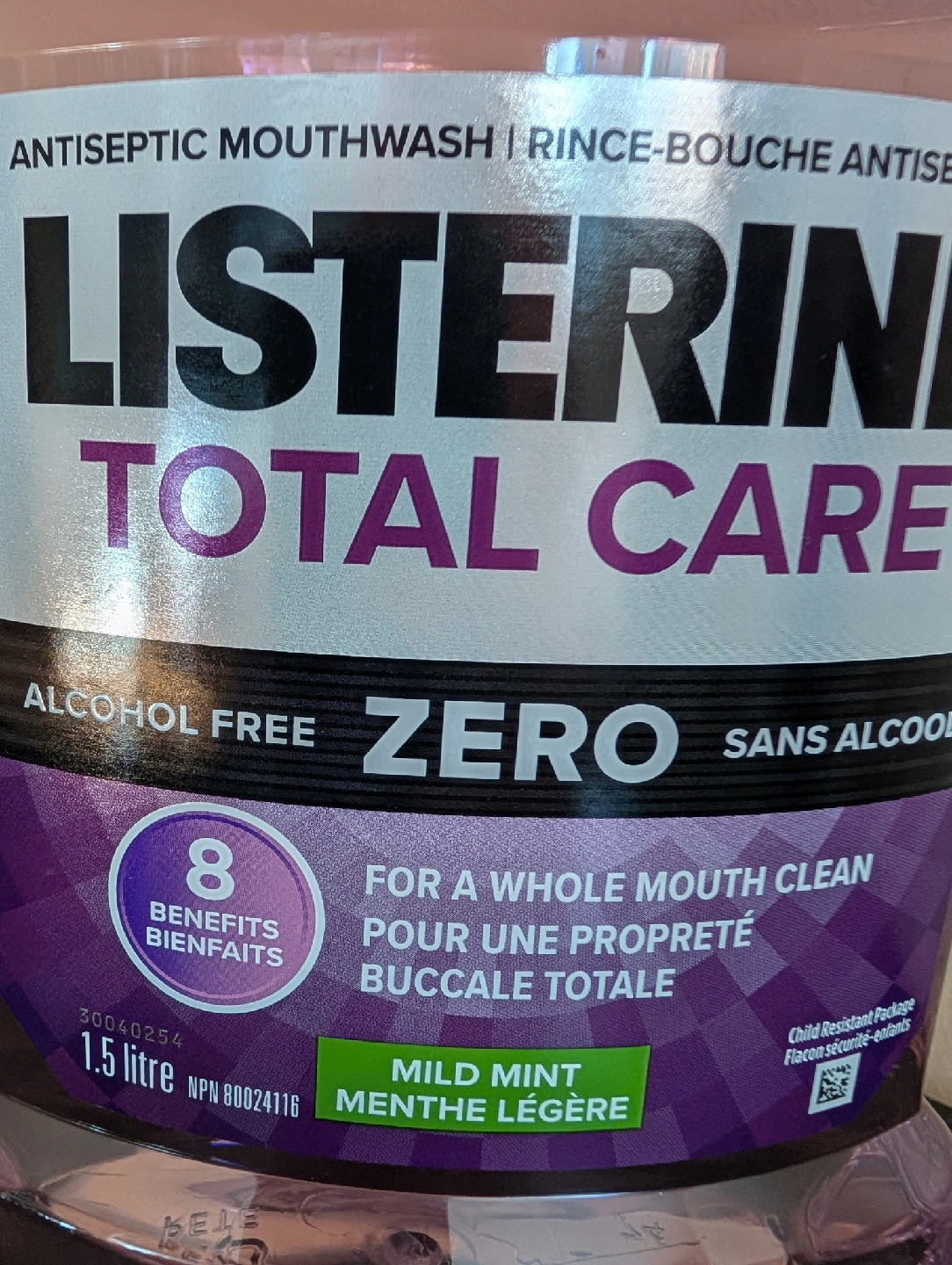 Brand new sealed Listerine Total Care Zero Alcohol mouthwash for sale. It's a value size (1.5L) and is in mild mint flavour. It's alcohol-free and provides 8 benefits for a whole mouth clean. Expiry date is March 2026