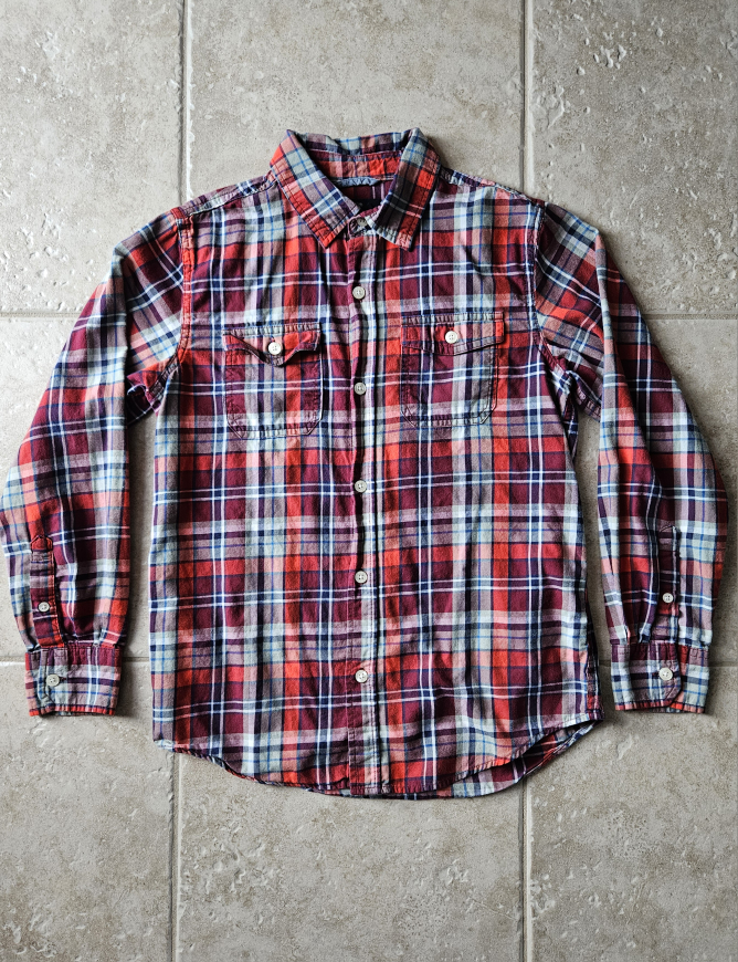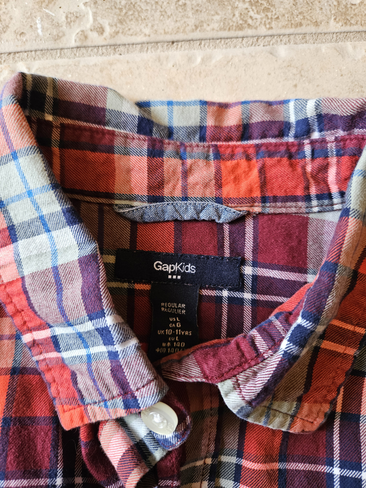 GapKids plaid button-down shirt size large (10-11 yrs). In excellent used condition. Colouring in 2nd picture is closer to actual.