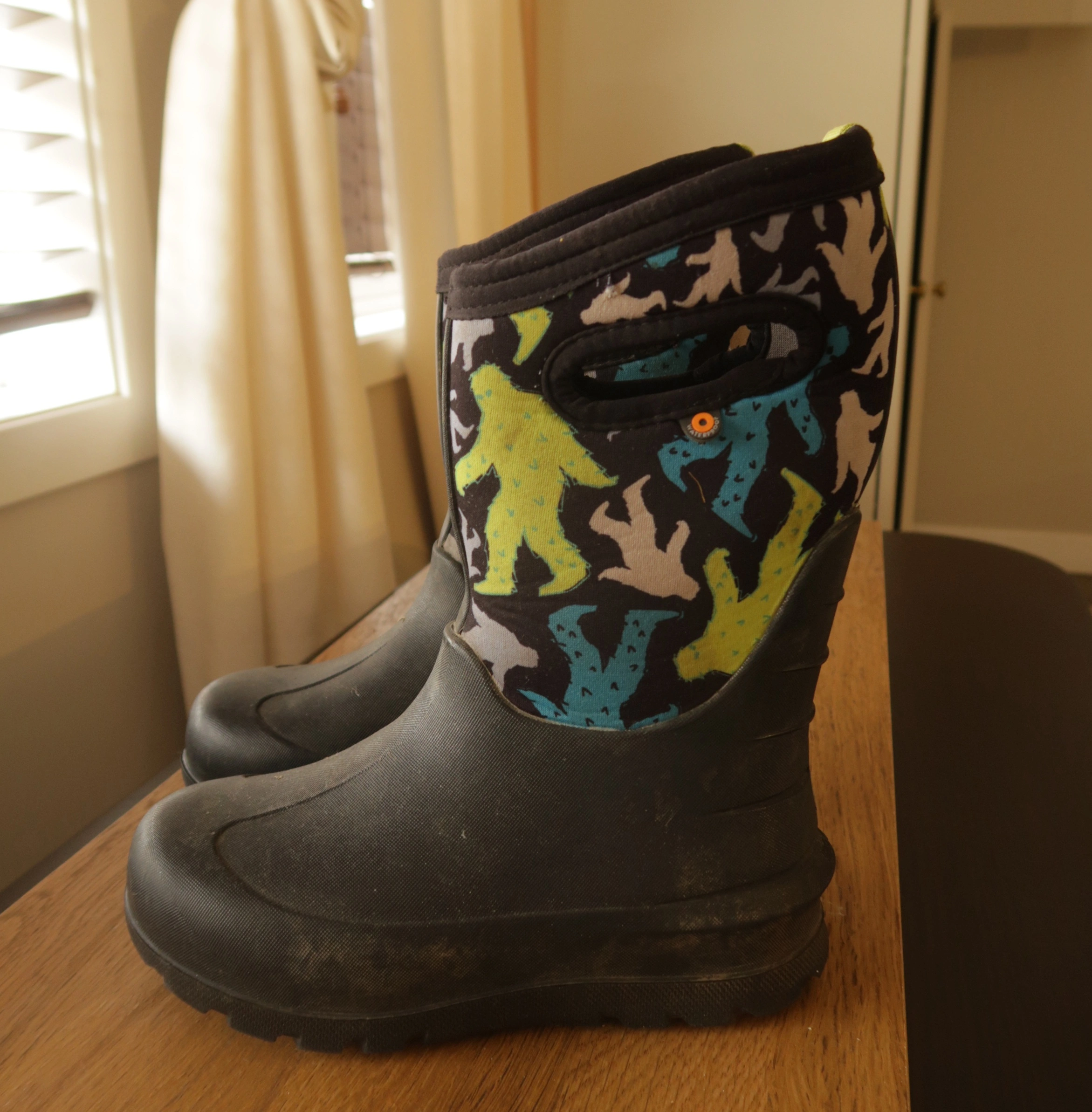 10Selling a pair of excellent-condition Bogs boots for kids. They were only worn for one season and have plenty of life left! Perfect for puddle jumping, rainy days, or playing in the snow. They are easy to slip on and off and provide great waterproof protection.