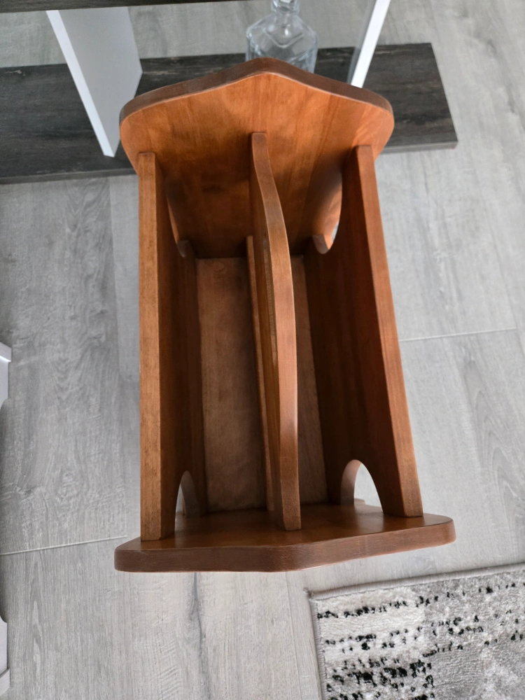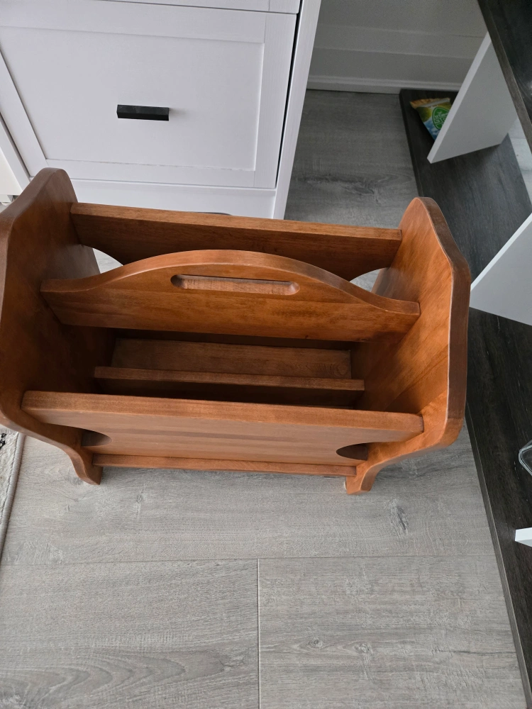 Selling a wooden magazine rack. It's in great shape and ready to hold your favourite magazines or books. The wood has a nice warm tone that fits well with most decor styles. It's a handy piece to keep things organized in your living room or office