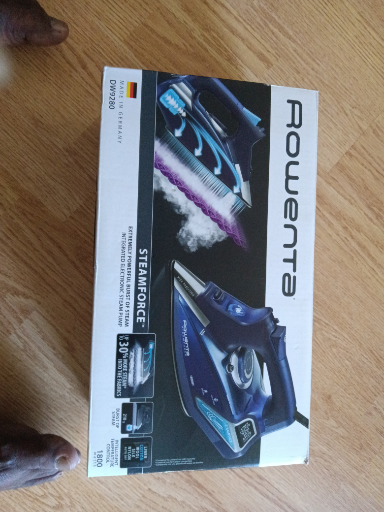 Selling a brand new Rowenta Steamforce DW9280 iron, still in its original box! This iron is made in Germany and features an integrated electronic steam pump for an extremely powerful burst of steam. It's designed with intelligent temperature control and is suitable for various fabrics like linen, cotton, wool, silk, and nylon