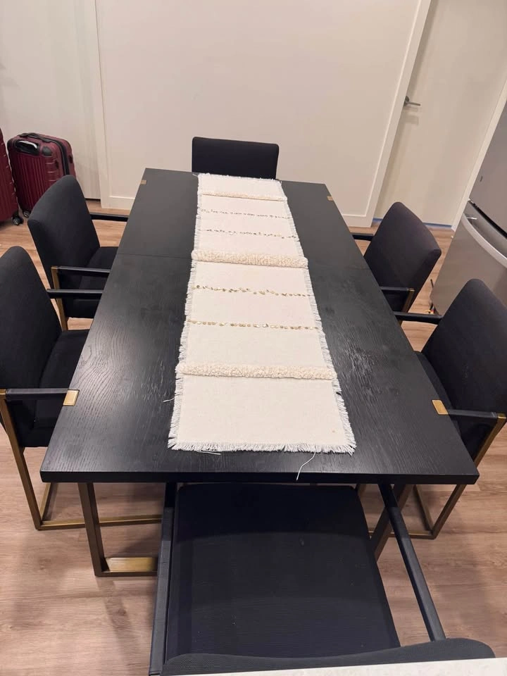 Selling a stunning Article Oscuro dining set in black finish. Includes an extendable Oscuro Dining Table and 6 matching Oscuro Dining Armchairs. Originally purchased for $3,093 total. Used gently β stylish, modern, and solid quality as expected from Article. Perfect for both family dining and entertaining guests. Dimensions: 29.5 X 70 X 35.5 β Good condition π‘ Smoke-free home π Pickup: Kingsway & 16th Ave, Burnaby