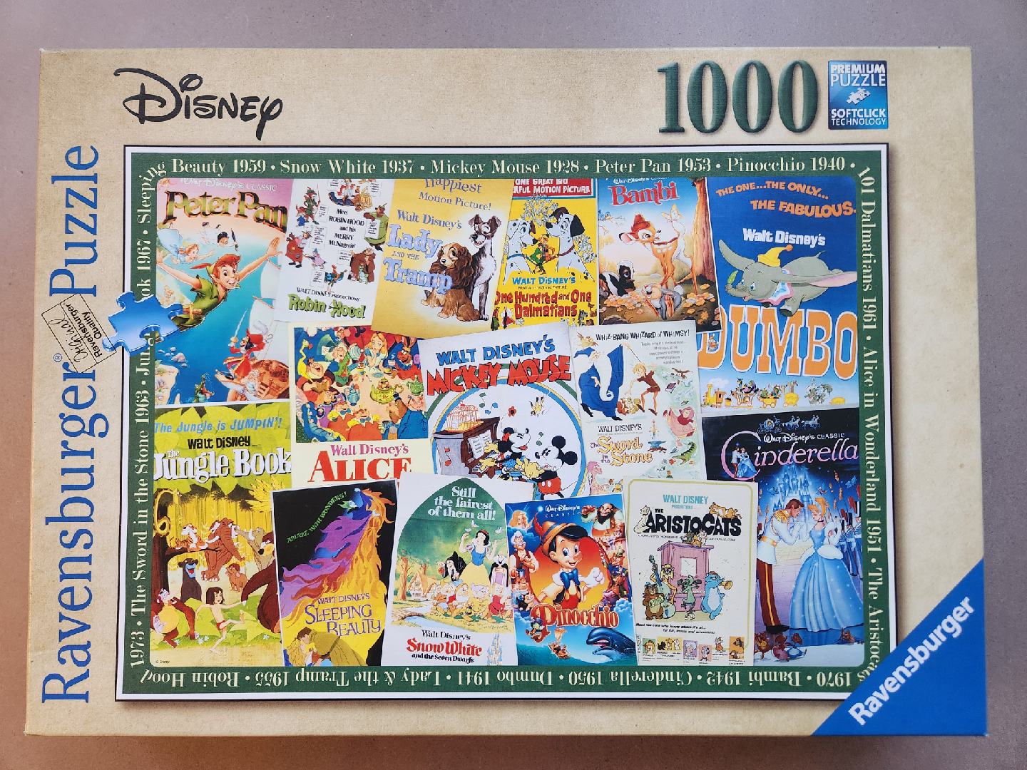 Ravensburger 1000-pc puzzle (measures 70 x 50 cm) featuring vintage Disney movie posters. Excellent, like-new condition; only used once.