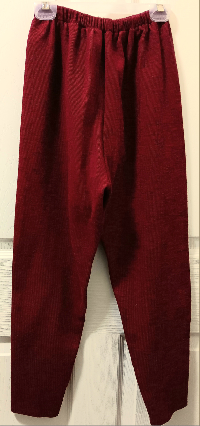 These burgundy pants offer a comfortable fit with an elastic waist and a soft, textured material, perfect for casual or workout wear. These pants are pre-owned, so please note that they are not in new condition.