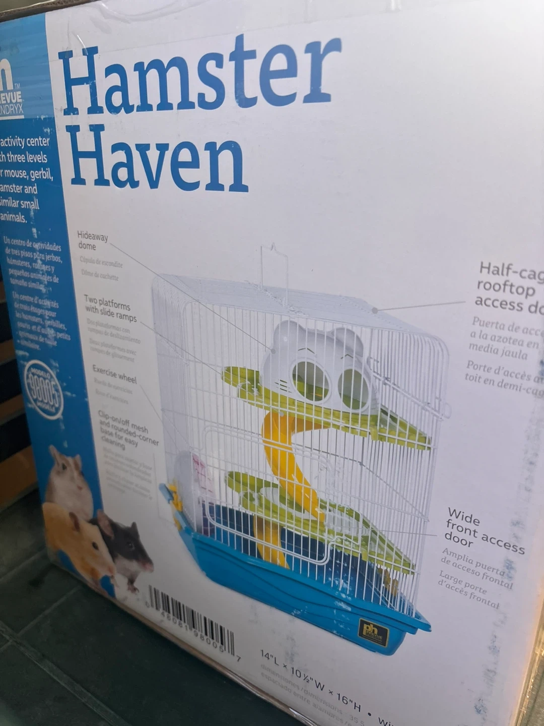 Selling a Prevue Hendryx Hamster Haven cage! It’s in great condition and comes with the original box. This medium-sized cage is perfect for your little friend, with an activity center and multiple levels for fun. It has a hideaway dome, two platforms with slide ramps, and an exercise wheel. The dimensions are 14" L x 10 5/8" W x 16" H. Originally bought for $99.99!