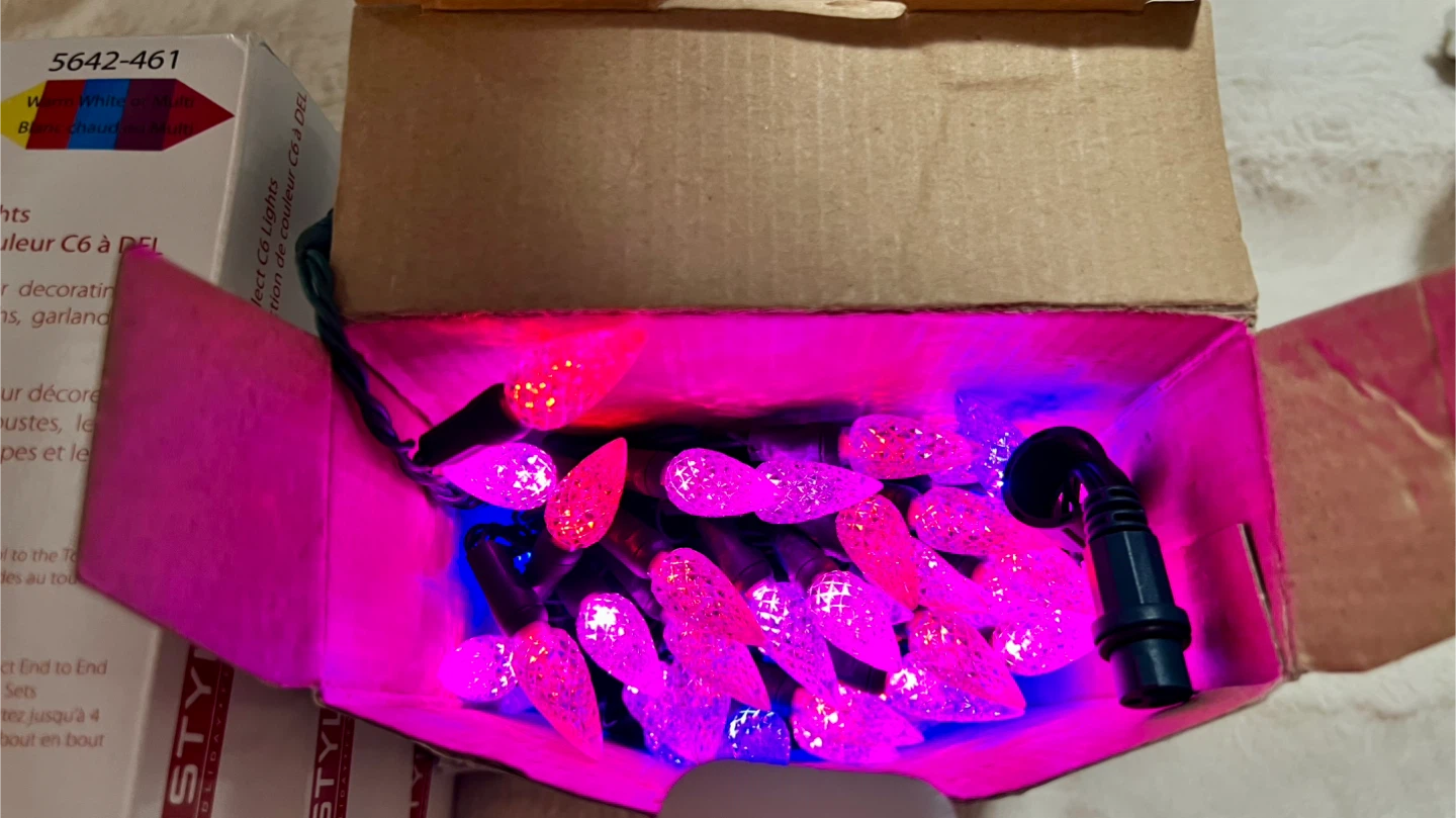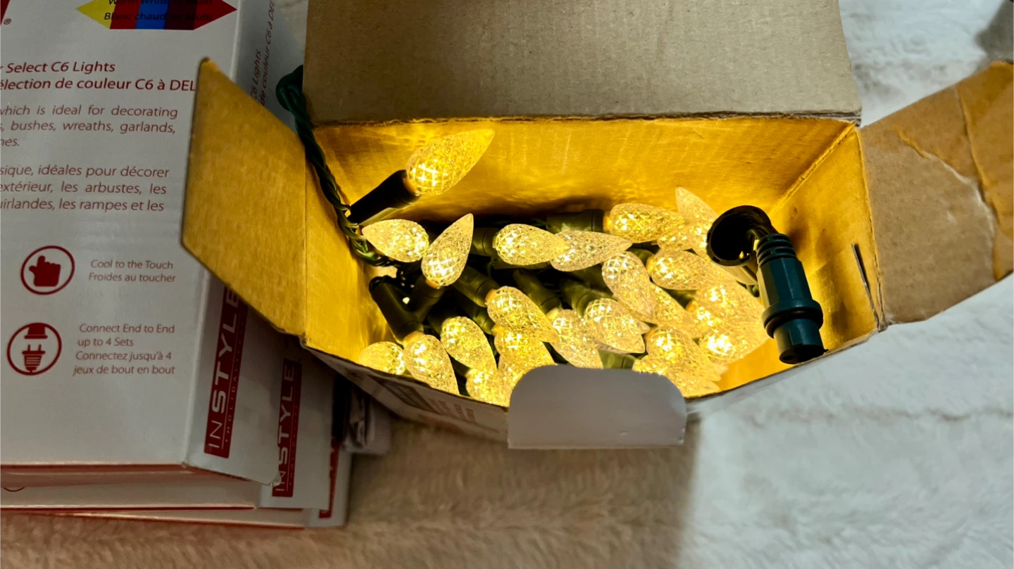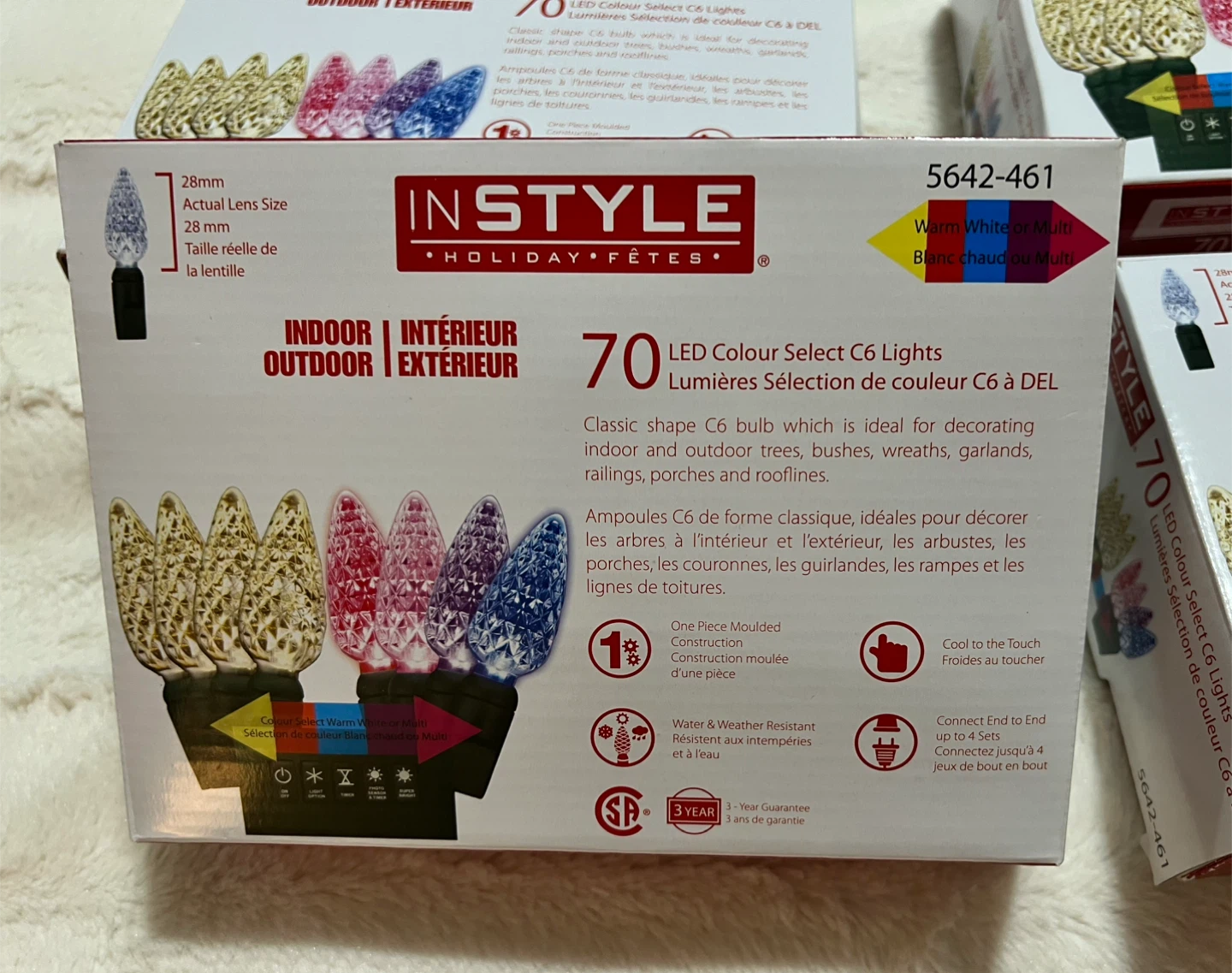 Instyle Holiday brand, classic shape C6 bulb, for indoor and outdoor use.