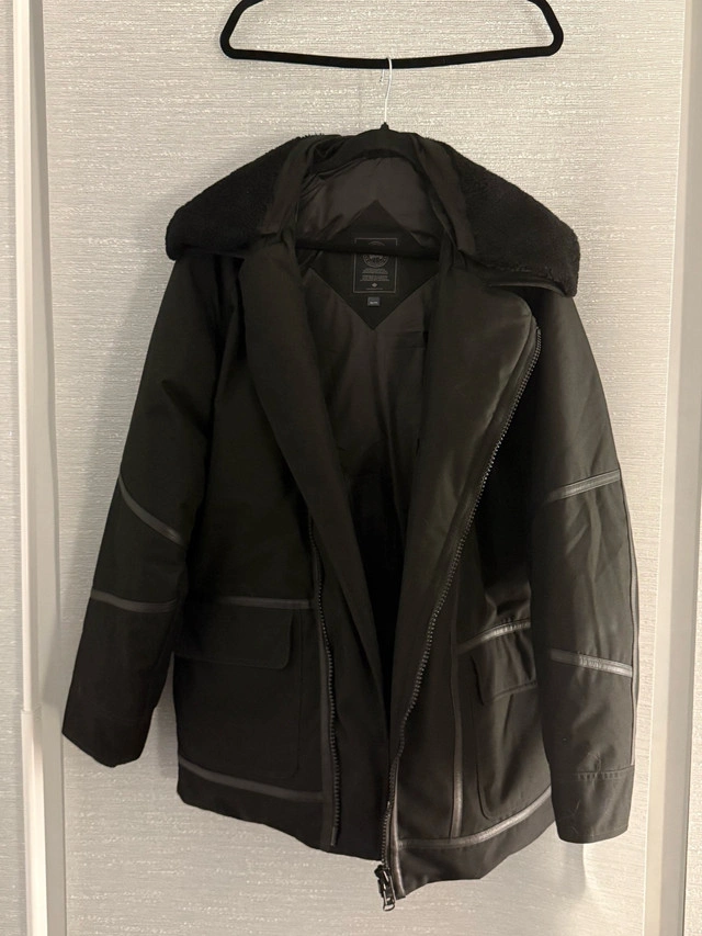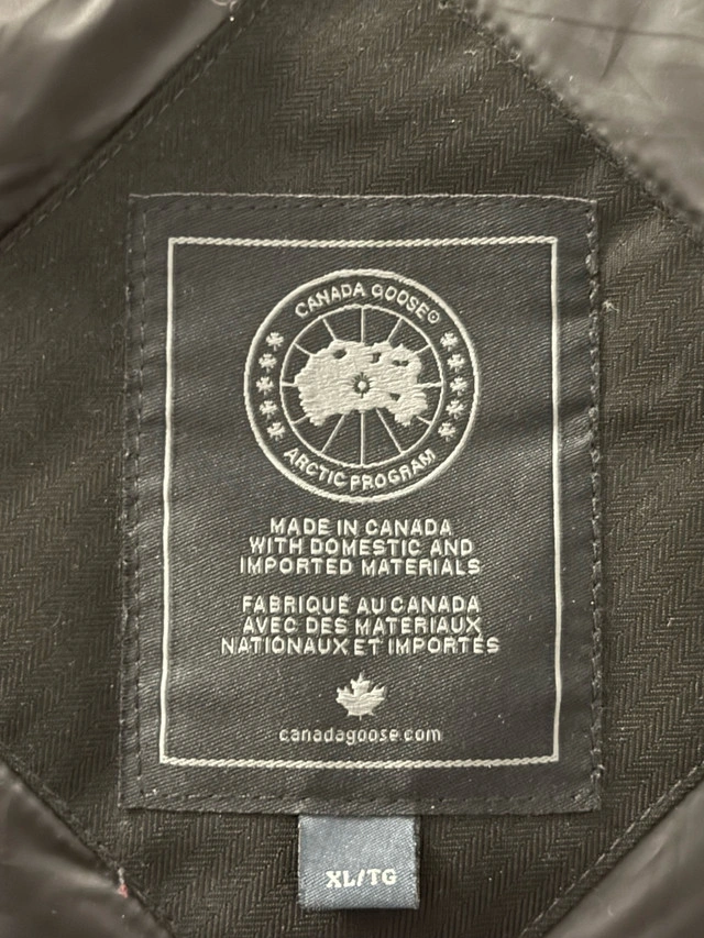 Canada Goose 9332M — Black Herringbone - Made in Canada - Premium leather trim, heavy-duty zipper - Rare Black Label design - Size XL — fits true - Excellent condition (almost brand new just removed tags)