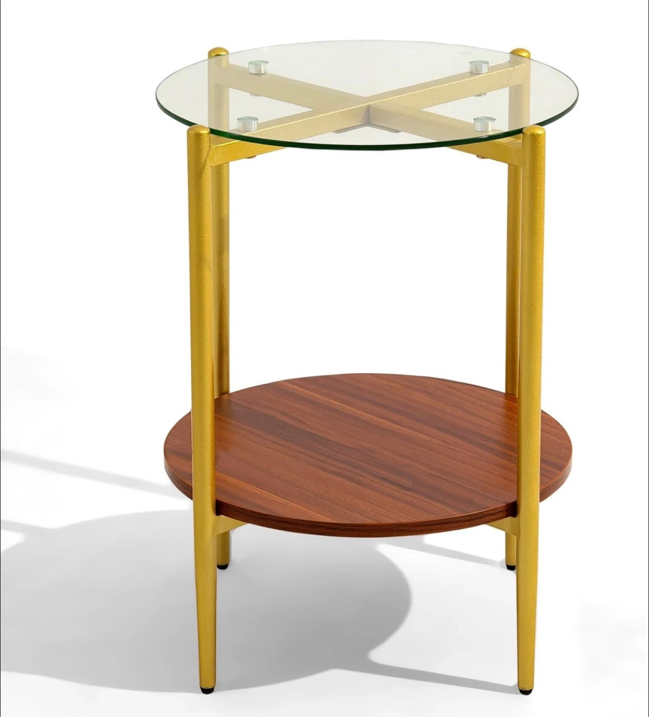 * Address - MEET HERE Starbucks 8010 Bathurst St Vaughan, ON L4J 0B8 - Brand new - No trades - Cash only. No e-transfers. • Design Style: Blends mid-century modern elegance with contemporary functionality, featuring a warm clear glass top, rich wood-grain shelf, and golden tapered legs. • Durability and Maintenance: Durable and easy-to-clean tempered glass top that is scratch-resistant, heat-proof, and waterproof. • Storage and Organization: 2-tier design with an open upper shelf for display and a lower tier for storage, keeping the living room organized.