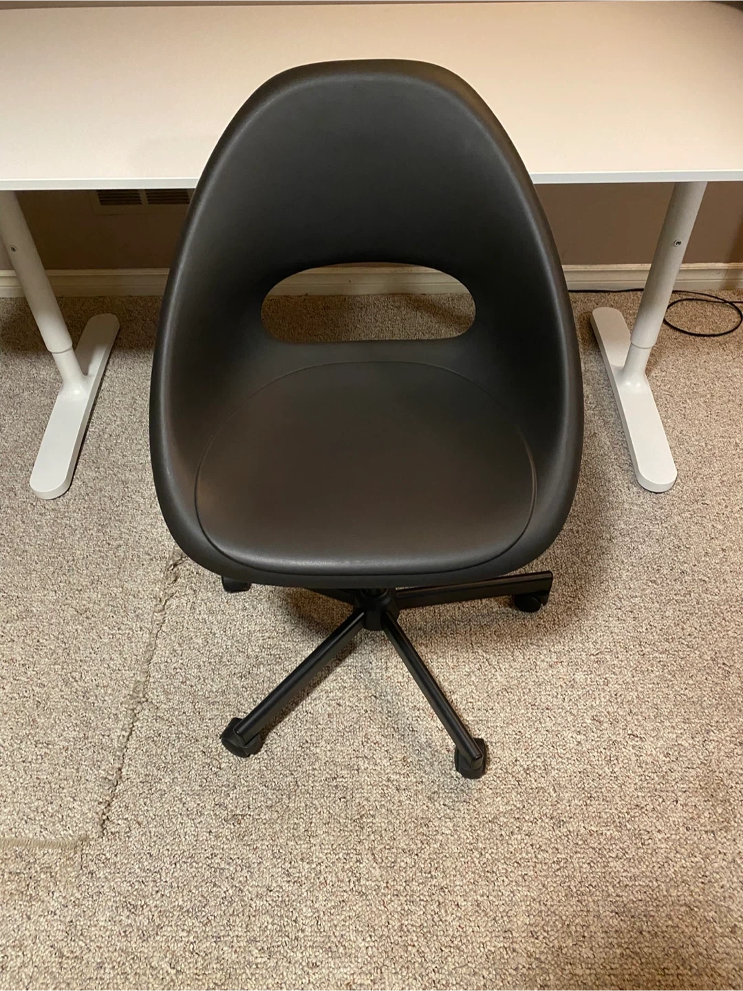 Two Dark Brown Leather Dining Chairs ($10 each)