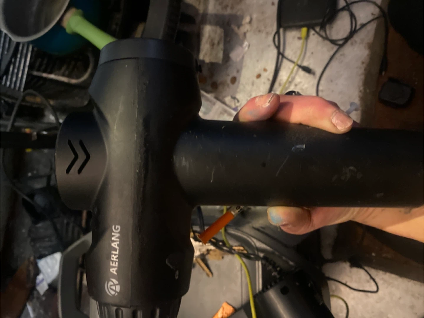 15Here's an Aerlang massage gun. It's black and comes new in black case with changeable massage heads, Perfect for post-workout recovery or just relaxing those tense muscles
