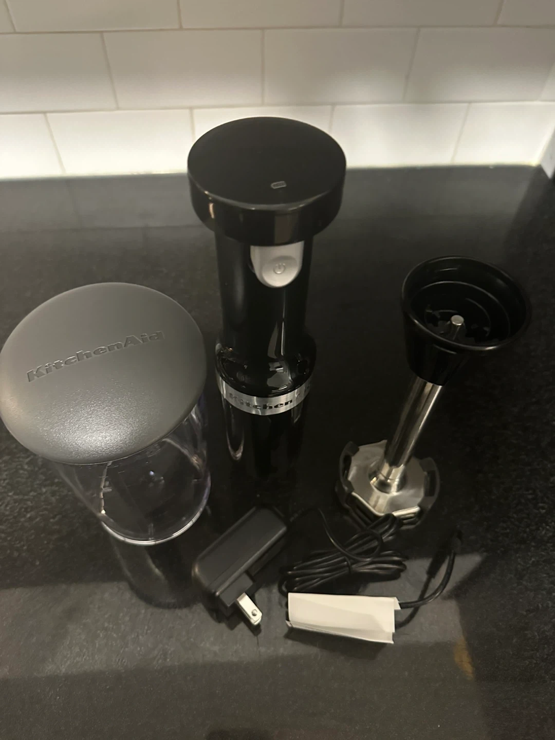 Selling a KitchenAid Cordless Hand Blender in excellent condition! It's a variable-speed blender that gives you all the power you expect, without the cord. You can make up to 25 bowls of soup on a full charge. Comes with all the components and accessories including the charger