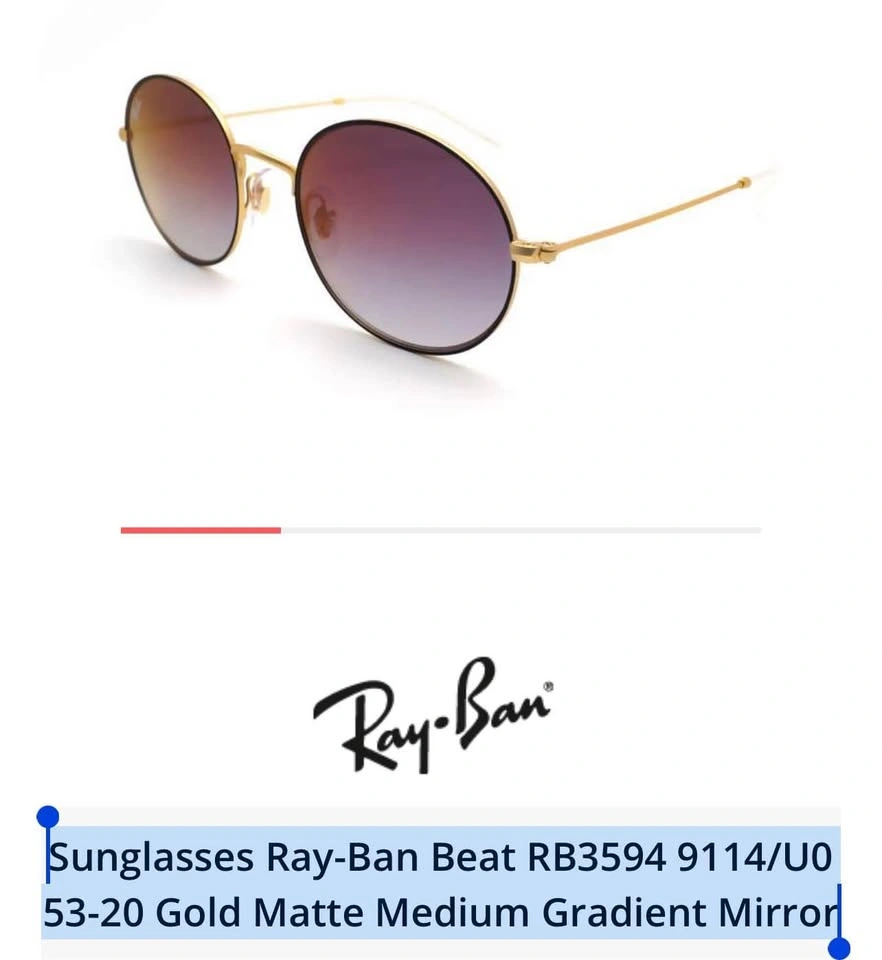10Ray Ban Authentic Gold Matte Gradient RB3594 9114U0 Size 53-20 Gold Matte Medium Gradient Mirror. Rare. Not available in the market as far as I’ve googled. If you find the EXACT glasses at a lower price somewhere else, let me know. Fixed Price $200. Not accepting any lower offers.