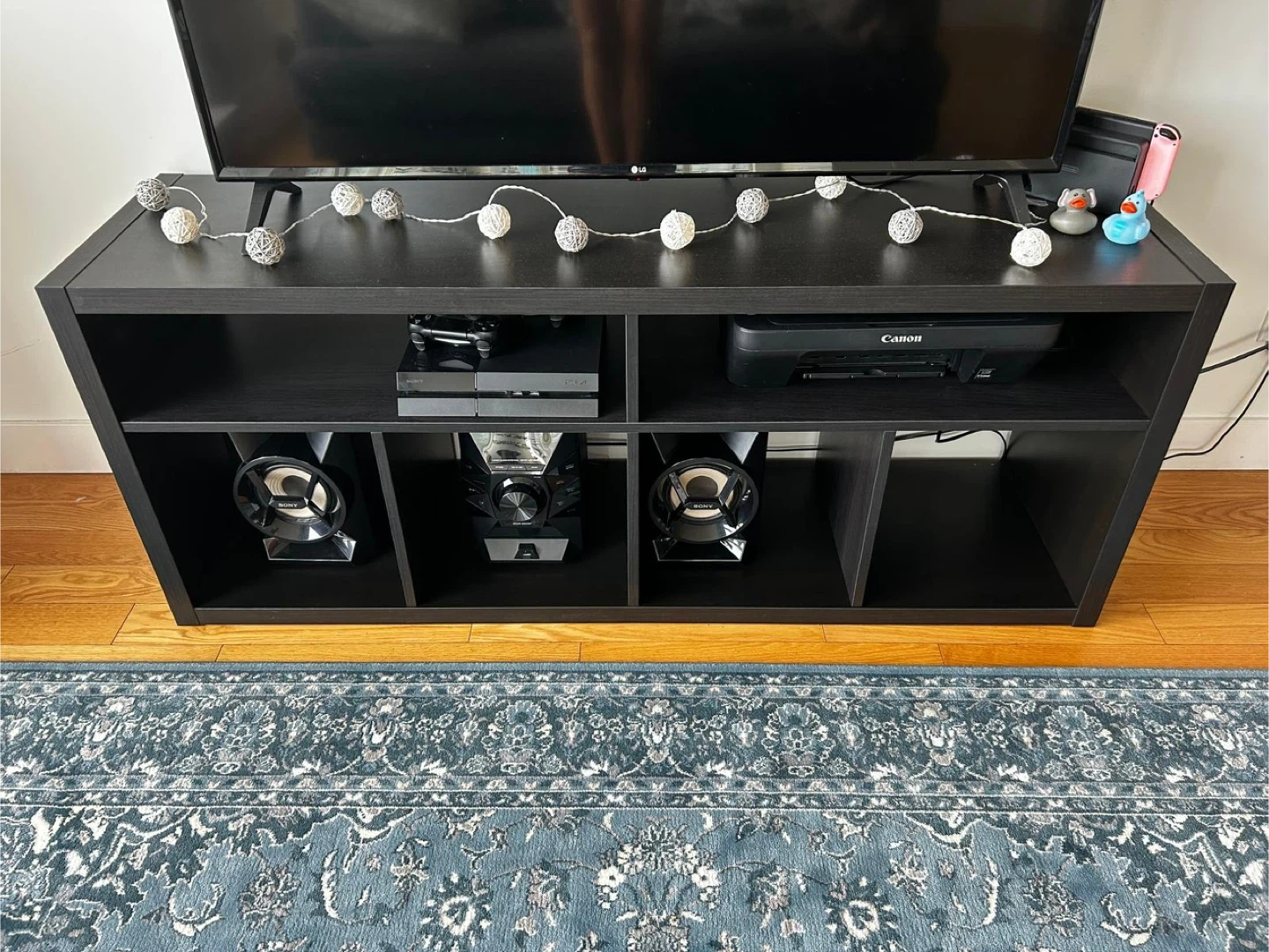 Selling a black TV stand. It's in great shape and ready for a new home! Perfect for organizing your entertainment setup. Only used for a few months.