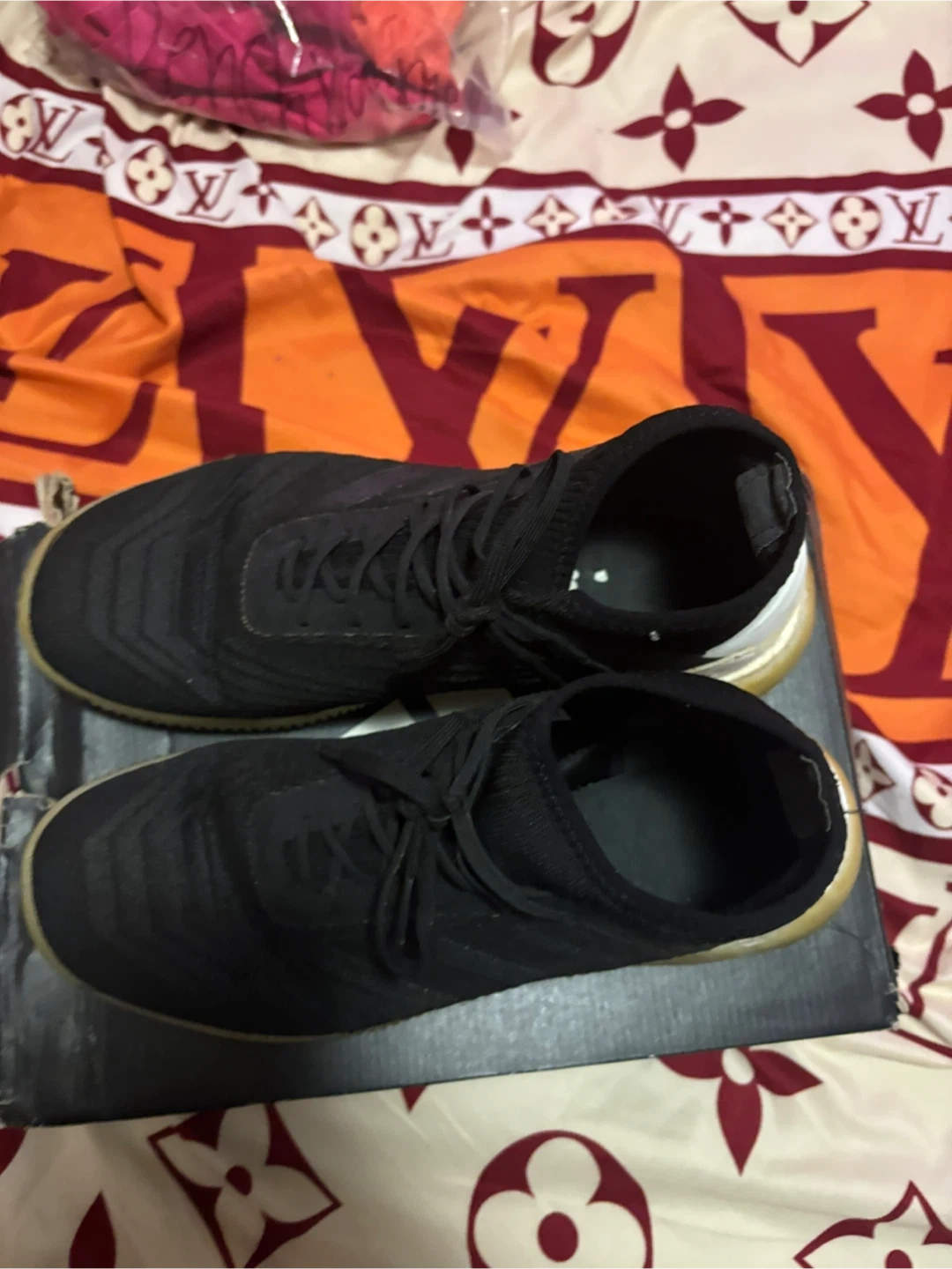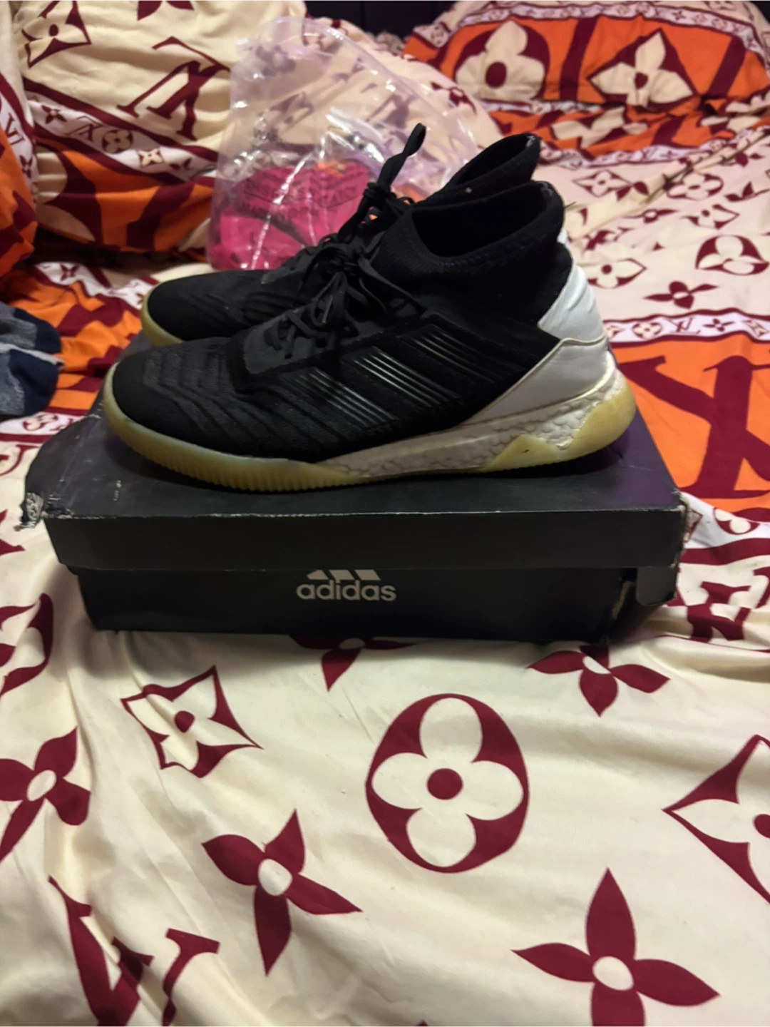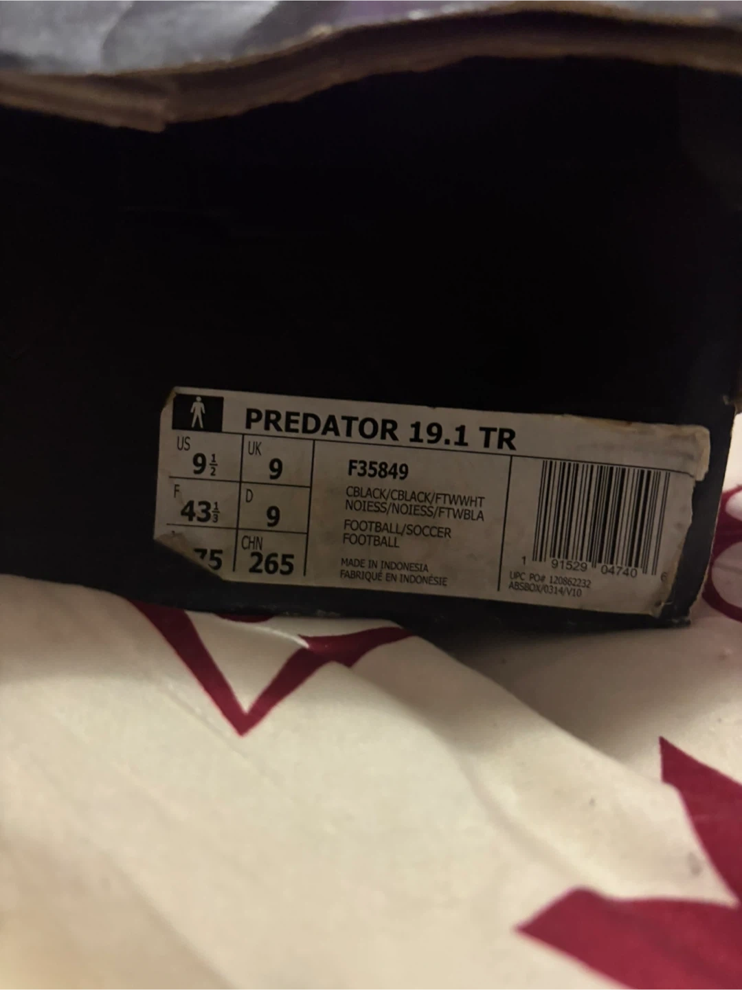 Selling a pair of Adidas Predator 19.1 TR soccer shoes in US size 9.5. They are black and come with the original box!