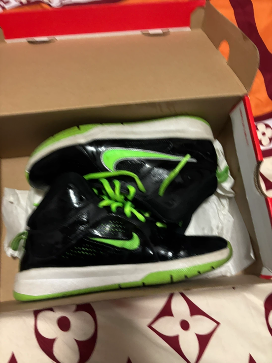 Selling a pair of Nike Son of Force Mid (GS) sneakers in size 4Y! They're black, dark grey, and white with neon green laces. Comes with the original box. Originally retailed for $59.99