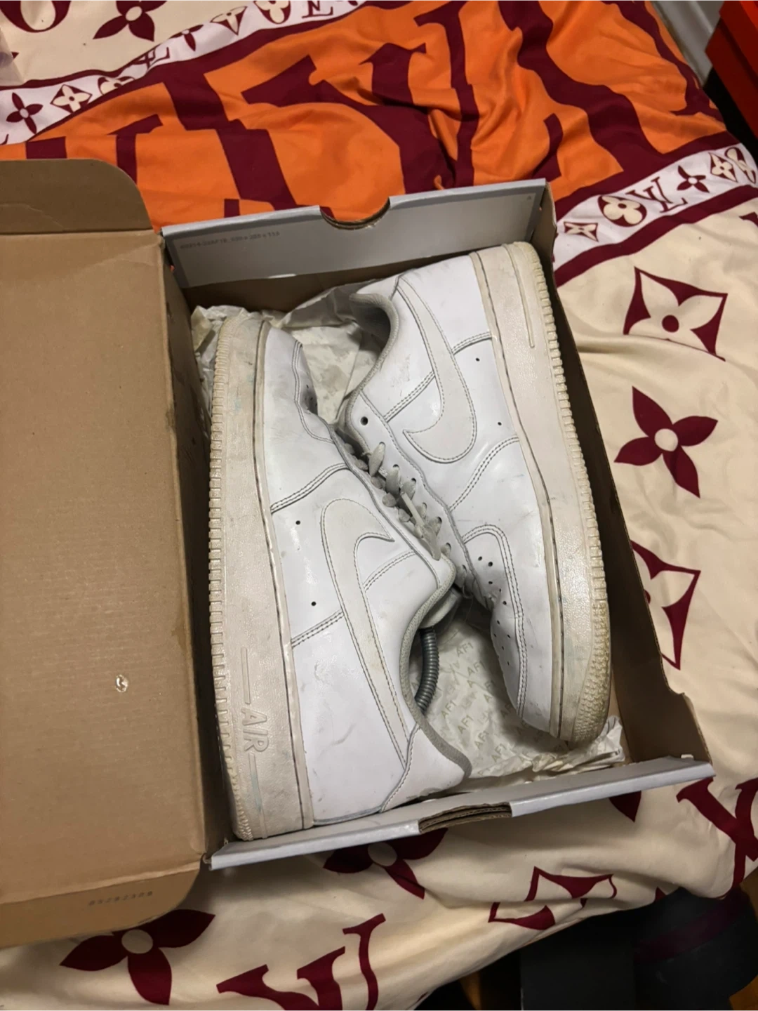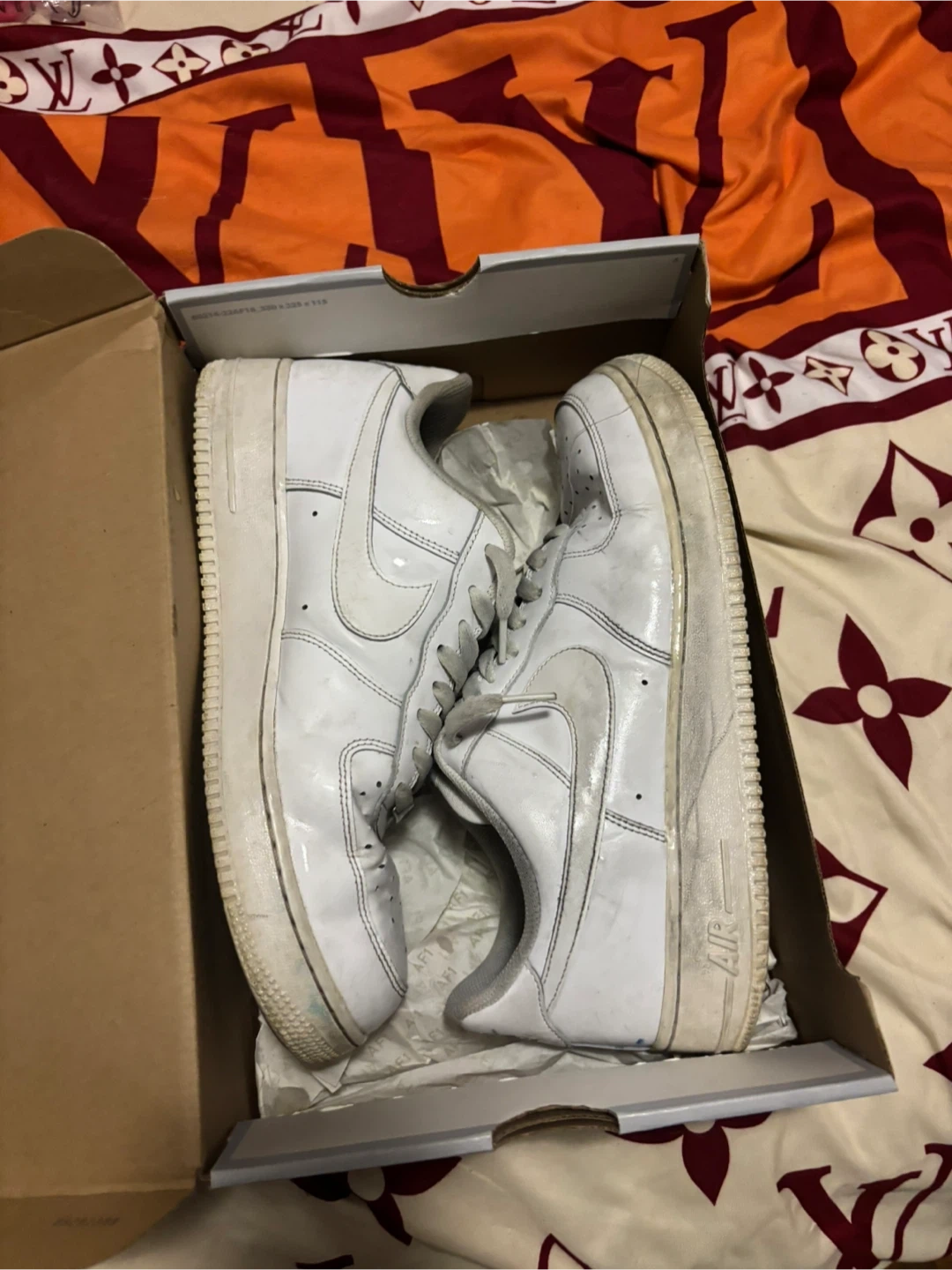 Selling a pair of Nike Air Force 1 '07 in white. They are in used condition, as you can see in the photos. The size is US 11 Comes with the original box!