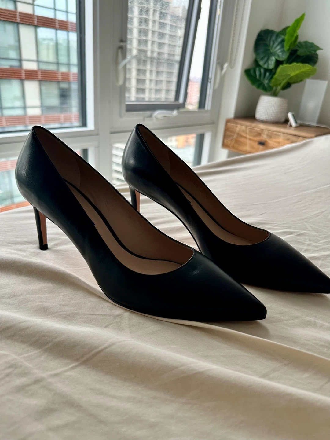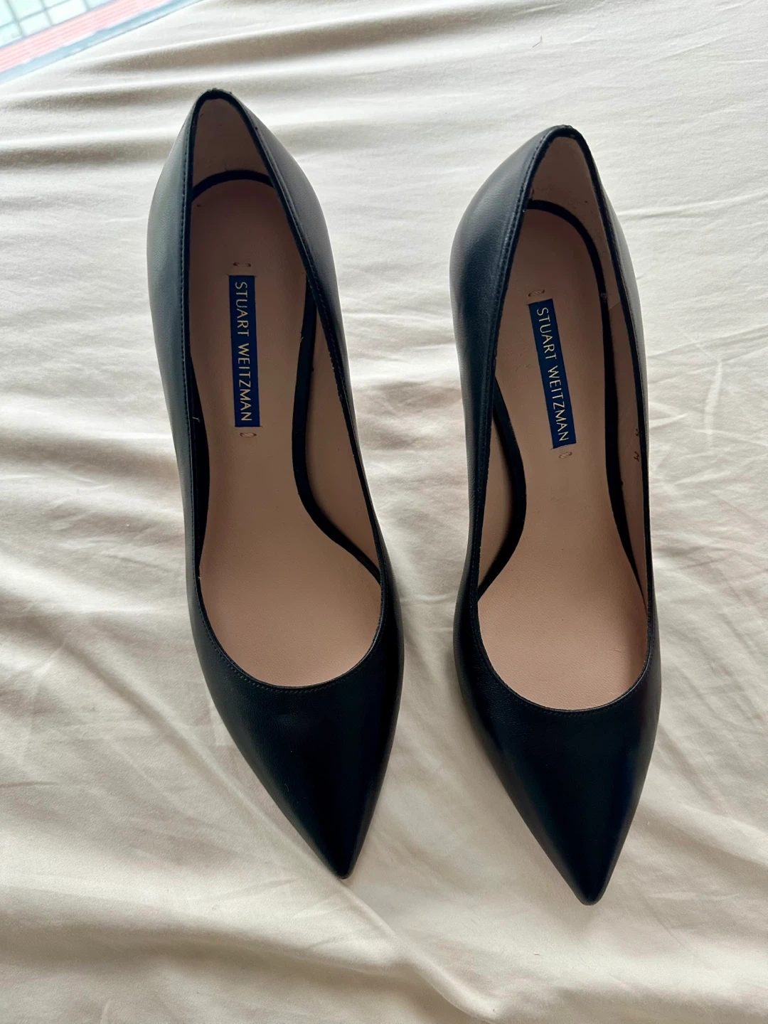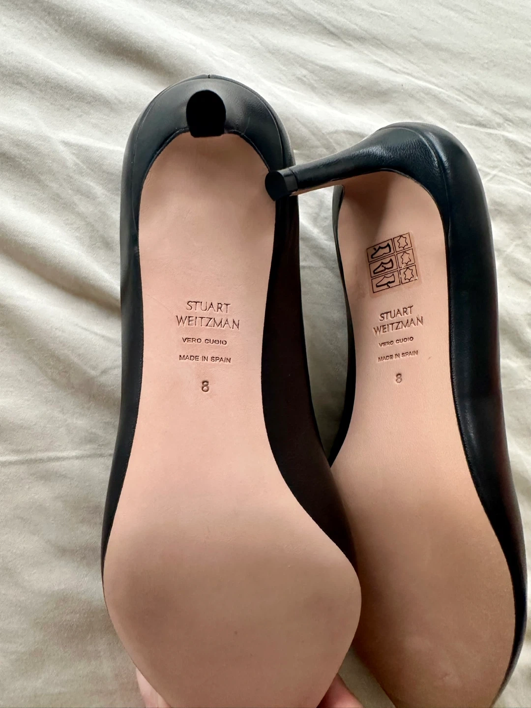 279Brand new. Selling a pair of Stuart Weitzman black leather heels in size 8. Come with the original box and dust bag. Perfect for any occasion! Retail price $650