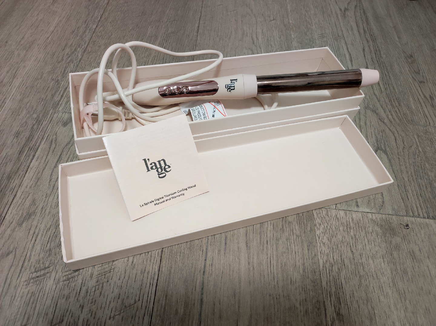 Selling a L'ange Le Spirale Digital Titanium Curling Wand. It comes with the original box. This curling wand is perfect for creating beautiful curls and waves. It's in great condition and ready for a new home