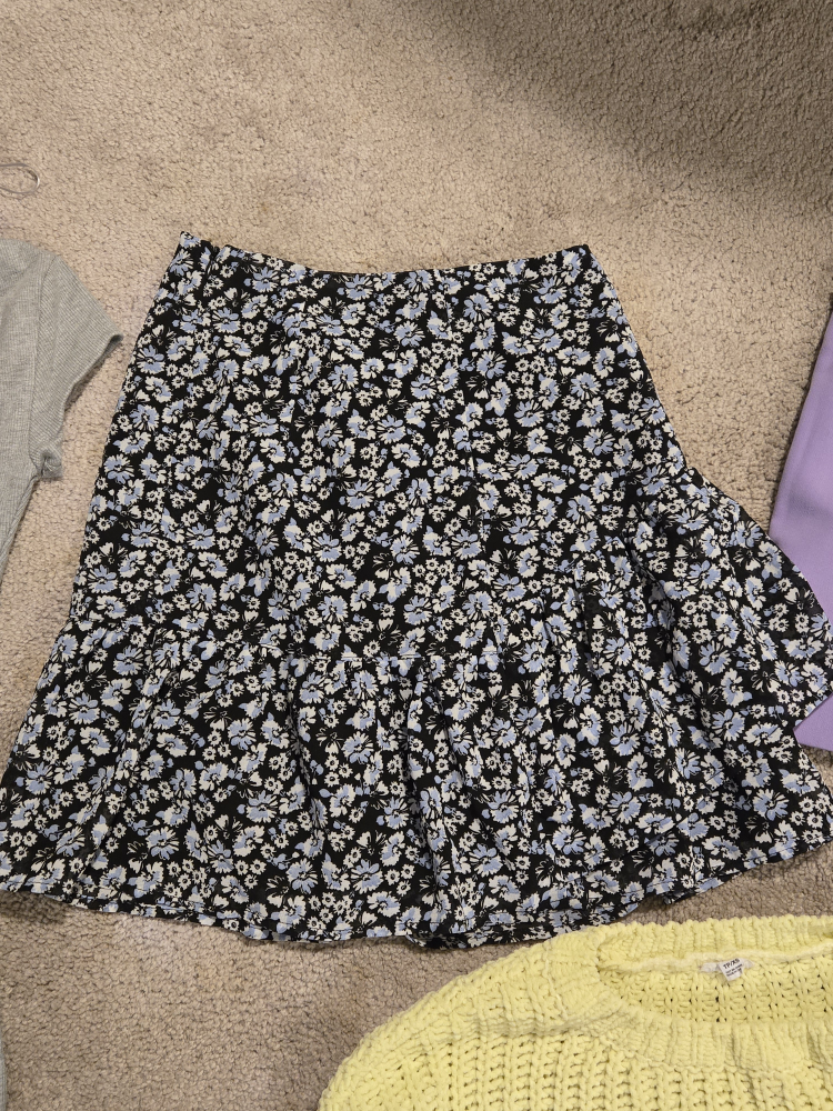 Cute floral mini skirt from Zara! It's in great condition and perfect for spring or summer. The skirt is black with a blue and white floral print