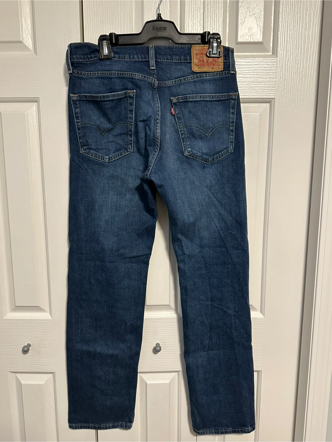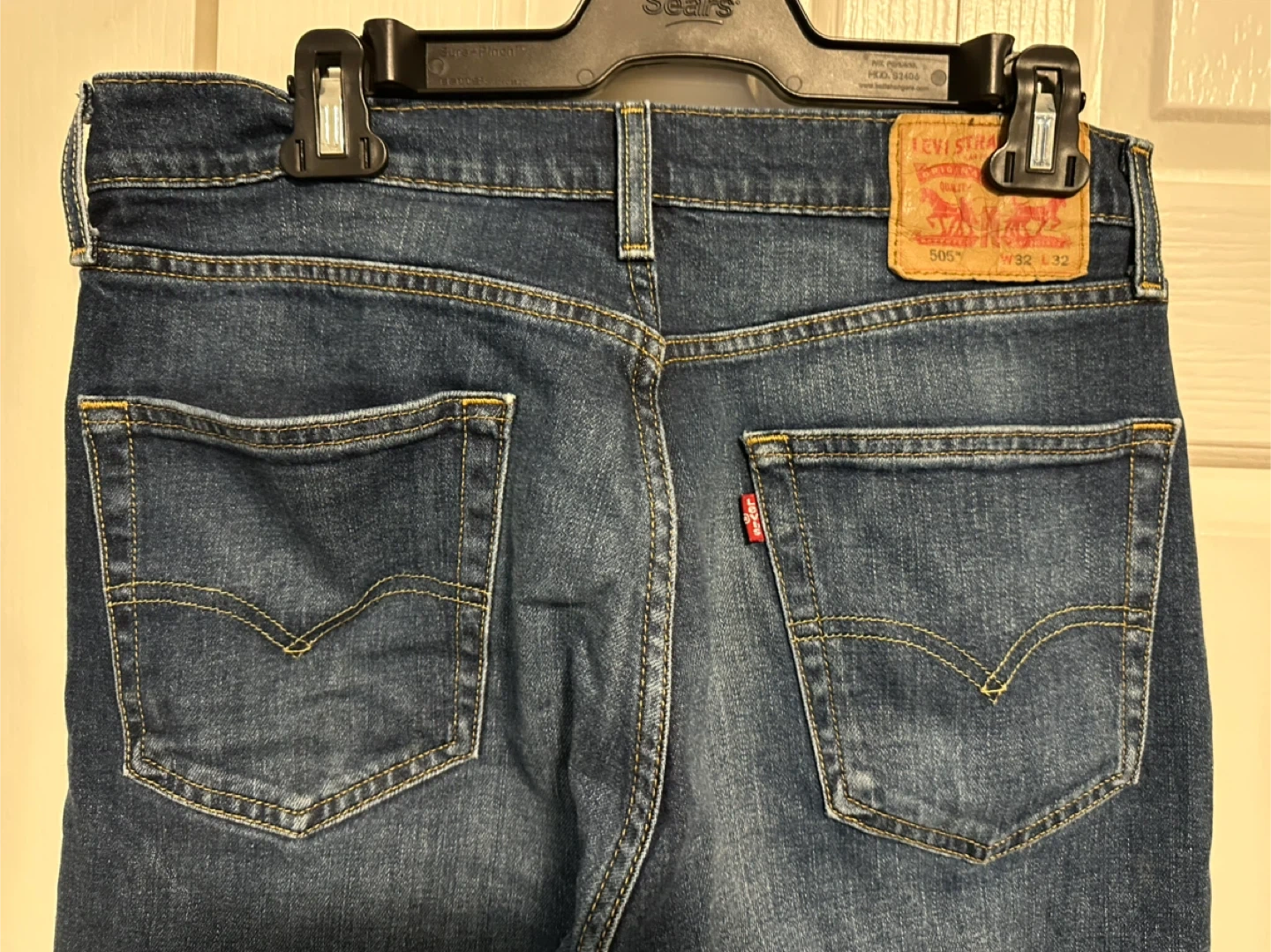 Selling a pair of Levi's 505 jeans in size 32x32. They're in great shape and ready for a new home! Classic dark wash denim, perfect for everyday wear