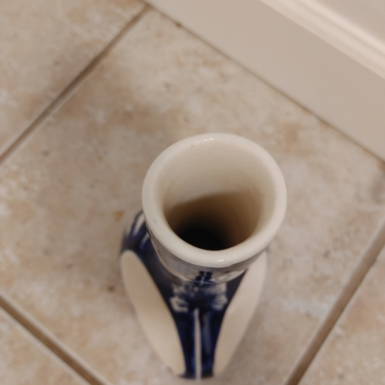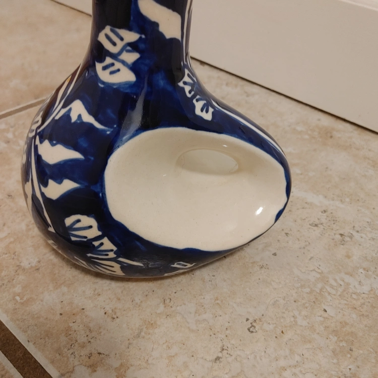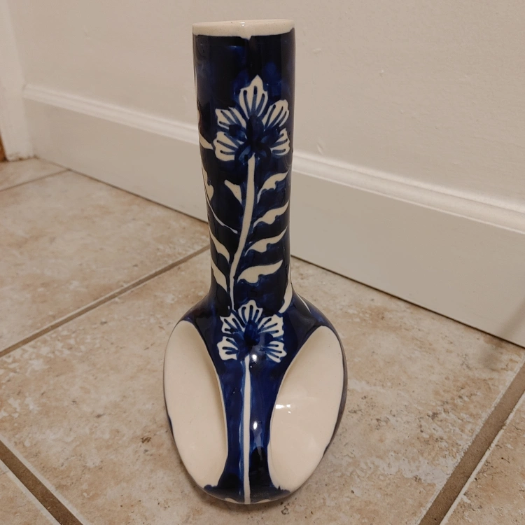 63A lovely blue and white vase featuring a floral design. It's in great condition and would look great in any home! made in India