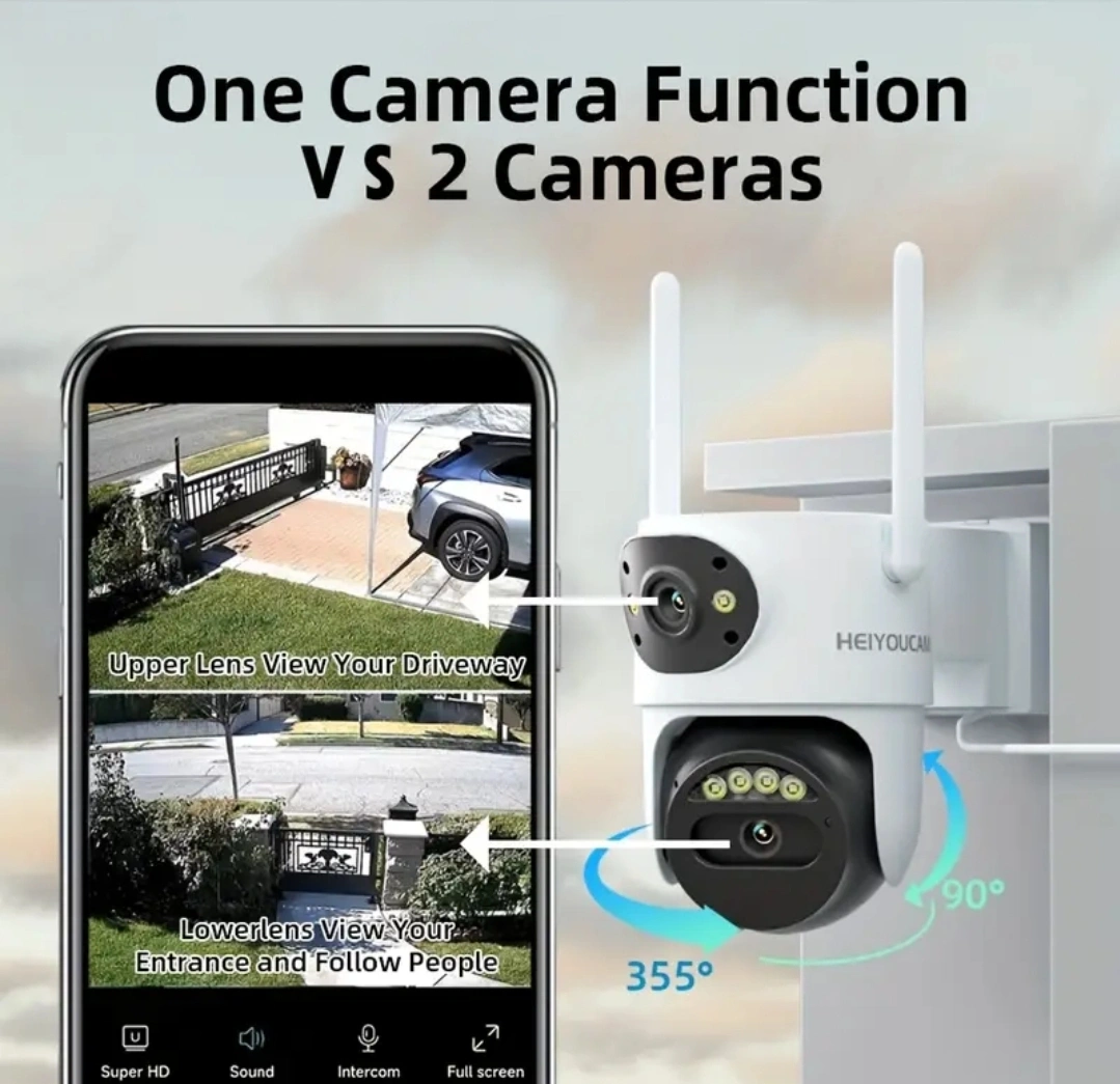 62[AI Tracking] HEIYOUCAM Dual lens Security Camera Outdoor | 3MP | AI Tracking, Light Alarm, Color Night, 2-Way Talk, 24/7 Record, SD/Cloud, wireless outdoor WiFi monitoring, HD details clear, automatic rotation, multi angle pan tilt, night vision, motion detection