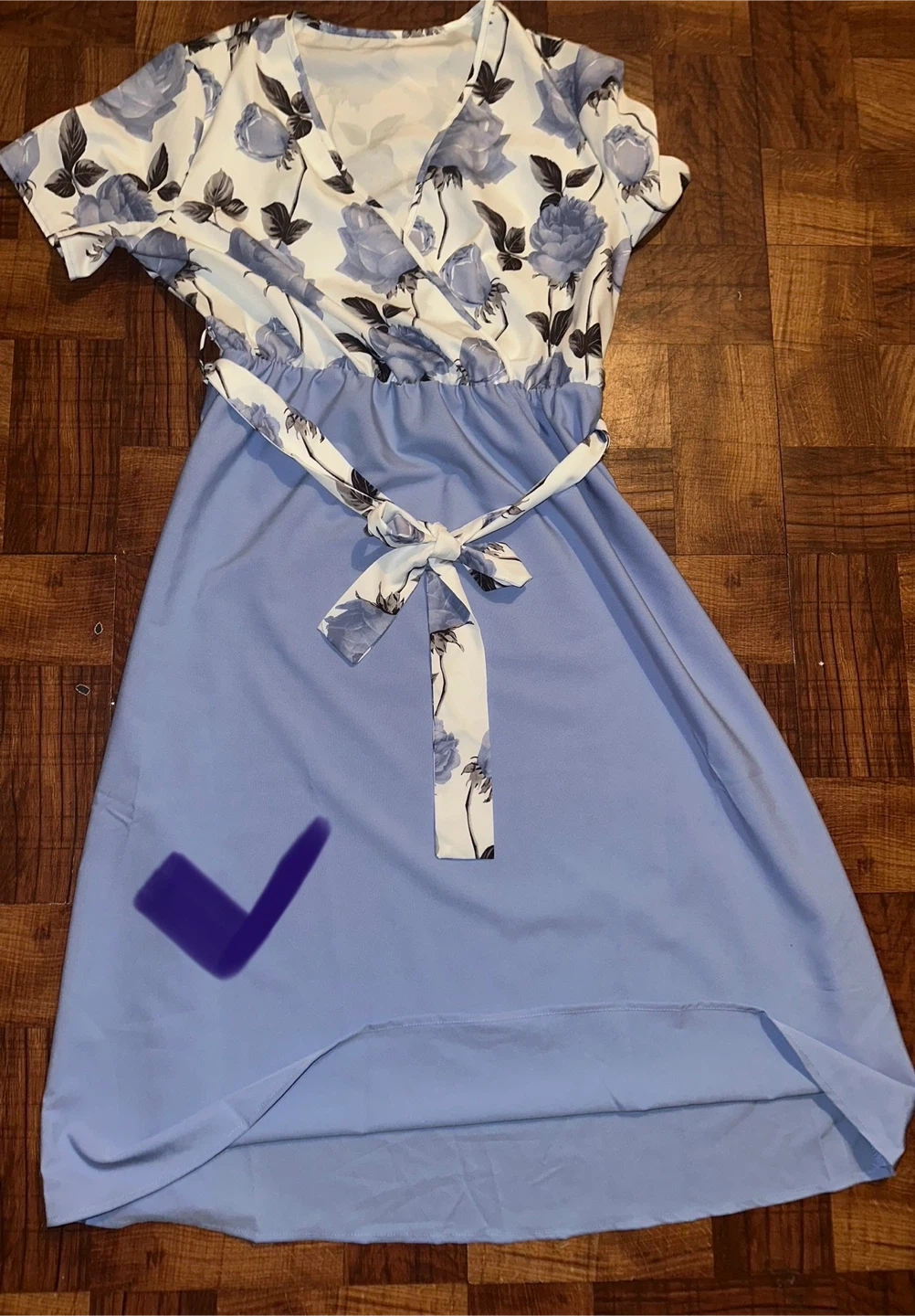 65Cute floral and blue dress with a matching belt! It's in great condition and ready for a new home