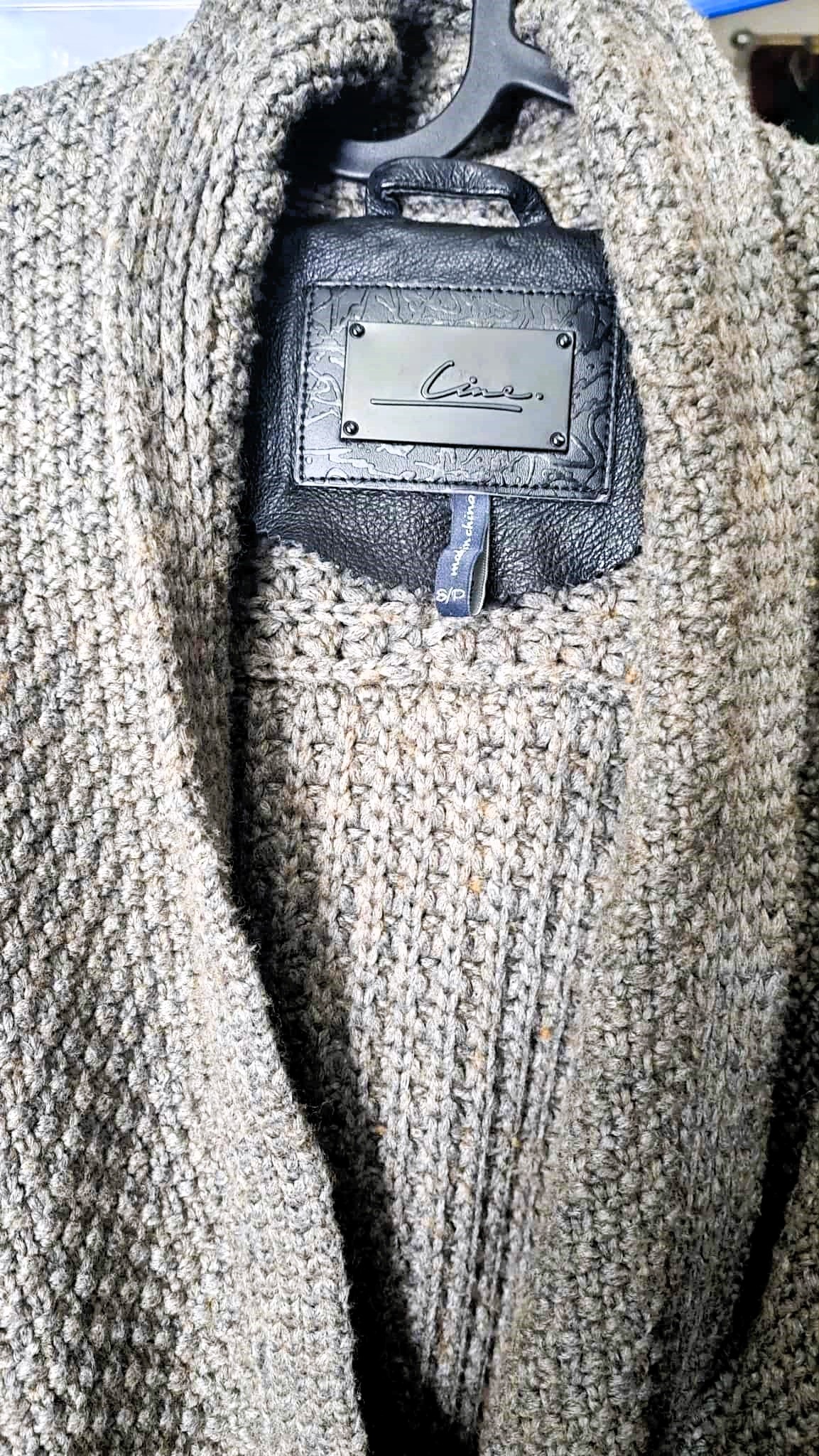 Line Women Luxury Sweater Cardigan w/ Genuine Leather Sleeves