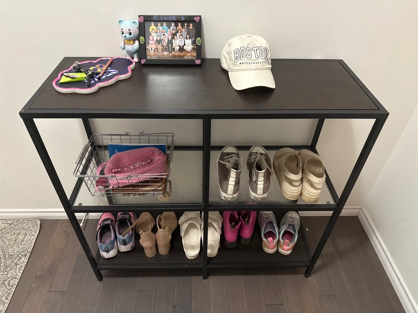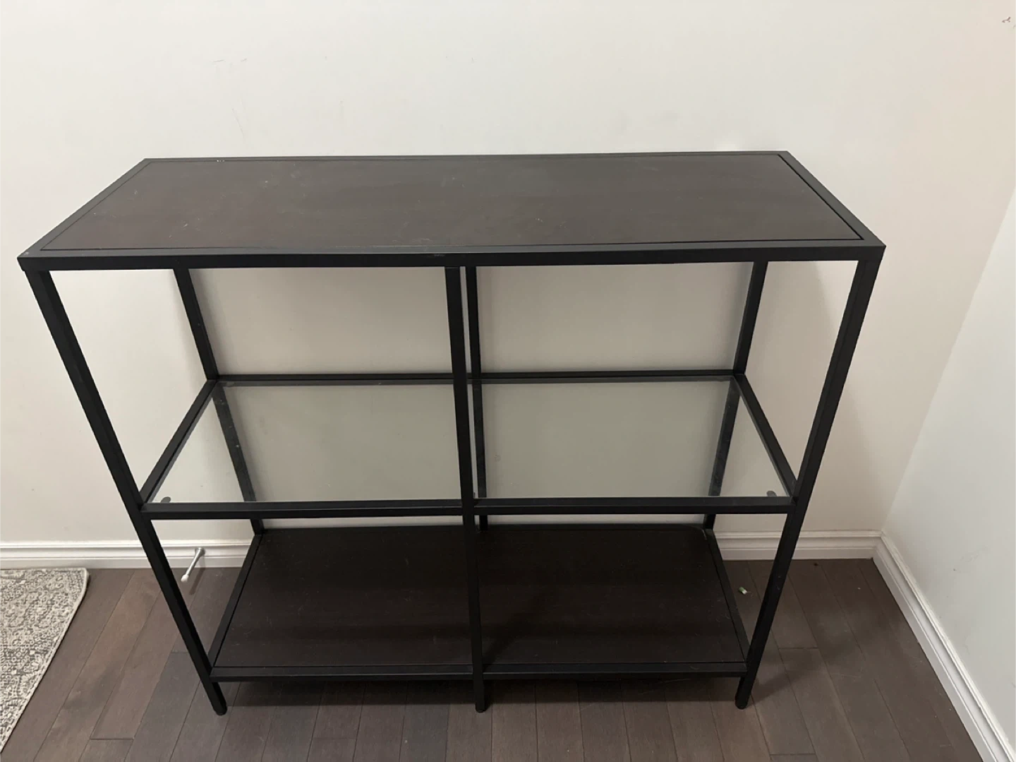 Selling an ikea 3 tiered black metal/ glass console table. It's in great condition, no cracks or scratches.