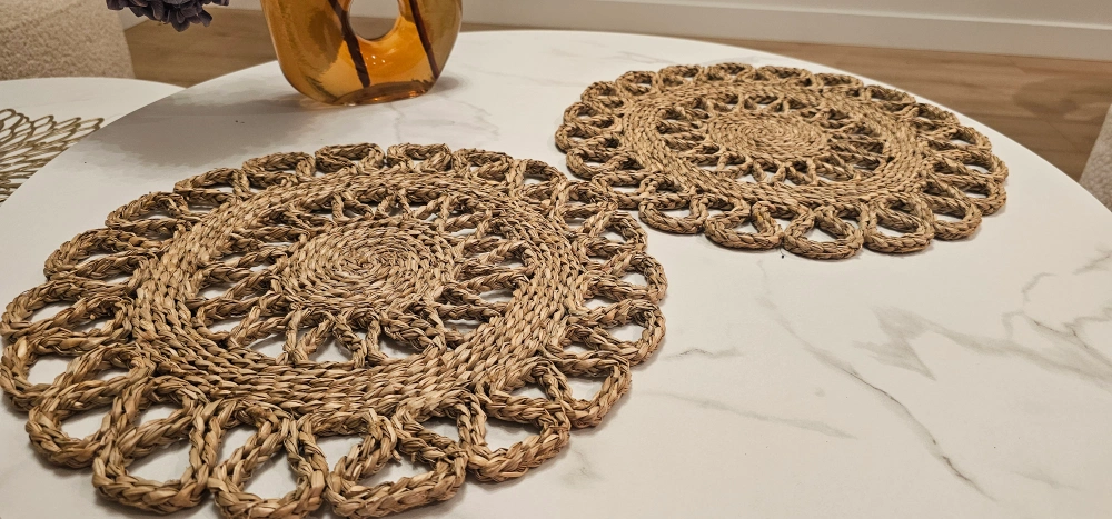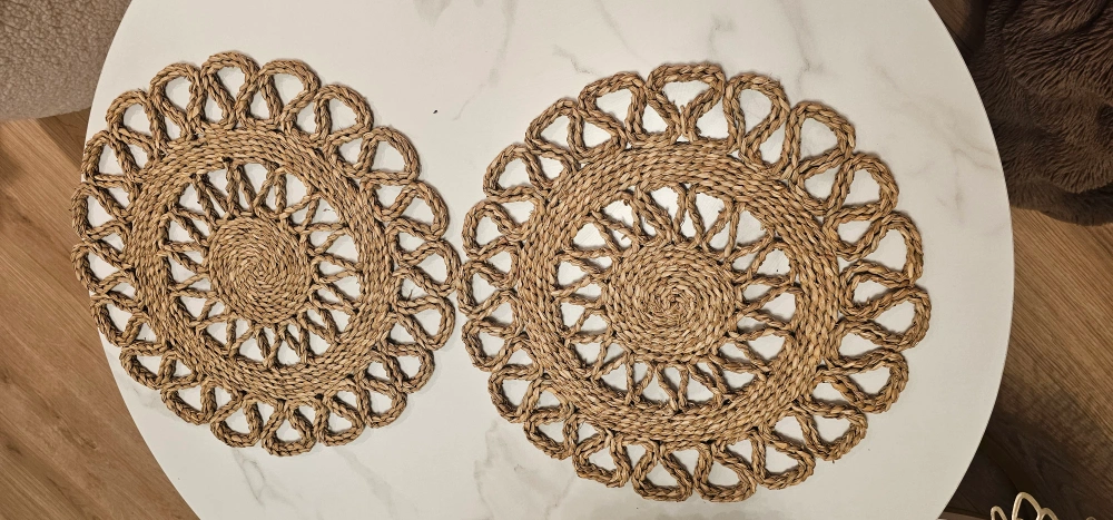 15Selling a set of two woven placemats. They're in great condition and would look lovely on any dining table or coffee table! The natural texture adds a warm and cozy touch to your home decor
