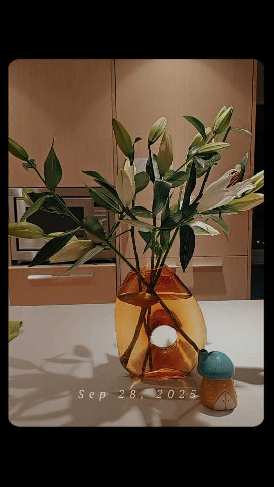 15A unique orange glass vase, perfect for displaying your favourite flowers! It has a distinctive hole design. It looks great on any table or shelf