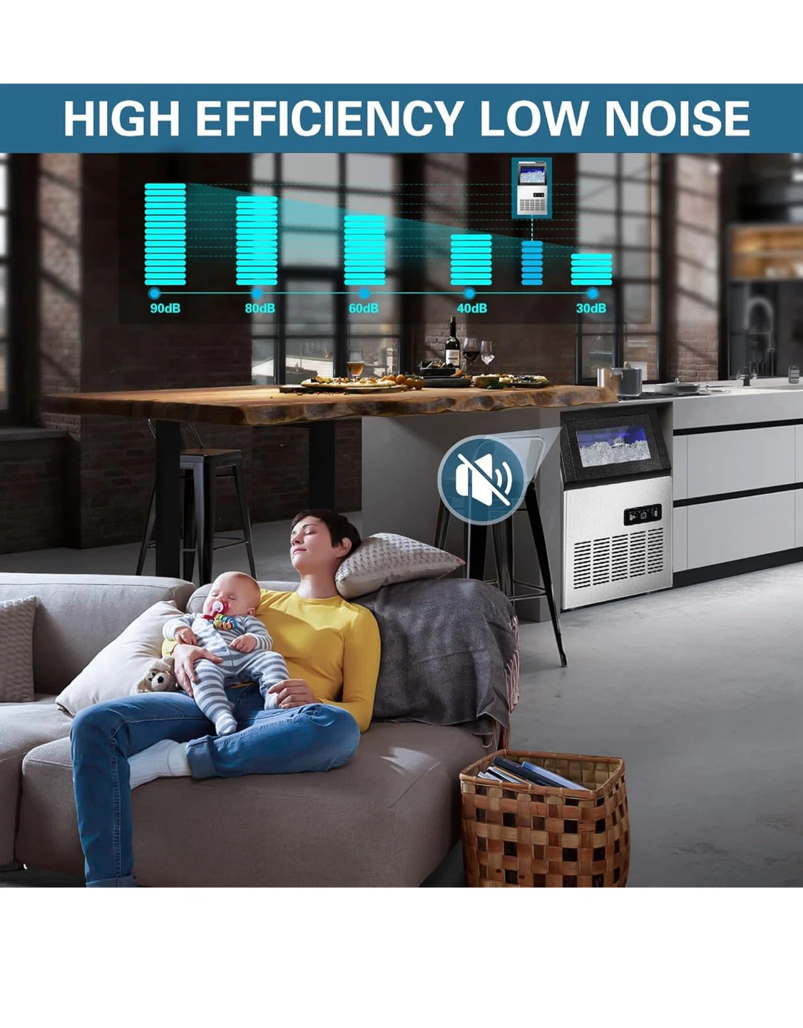 120LBS/24H Commercial Ice Maker Machine, Freestanding Stainless Steel with Adjustable Ice Thickness & LCD Control,40 Cubes/Cycle,Self-Cleaning,Quiet Operation for Home,Restaurant,Bar