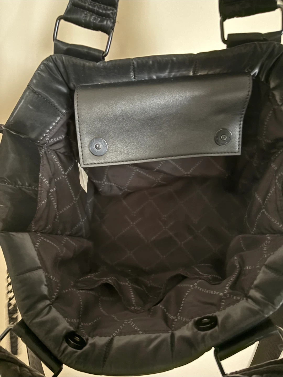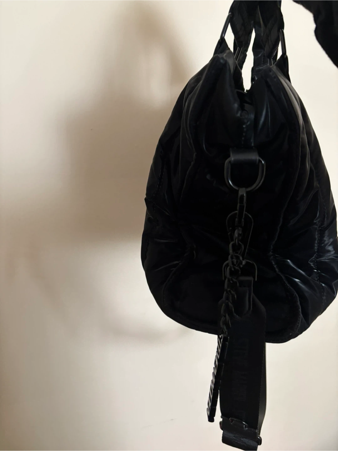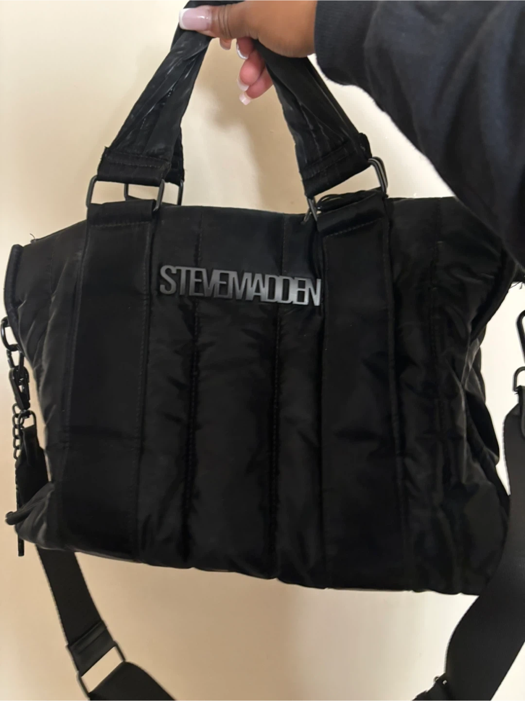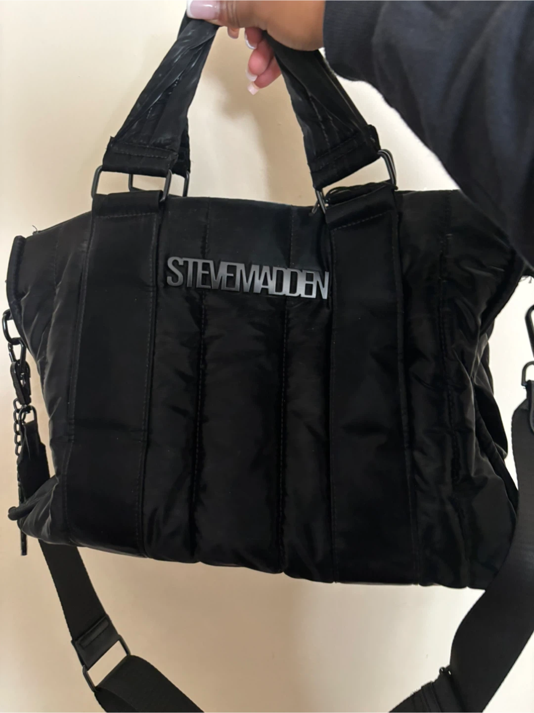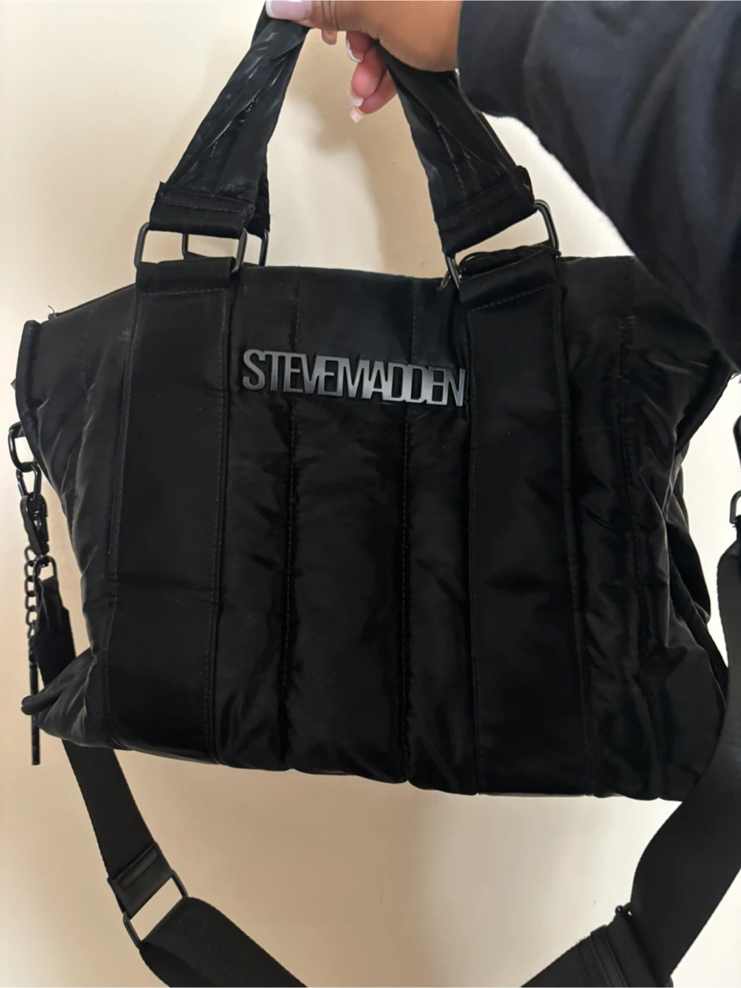 Selling a Steve Madden black puffer duffle bag! It's in great condition and features a quilted design. Perfect for the gym or a weekend getaway! Msg for inquiry.