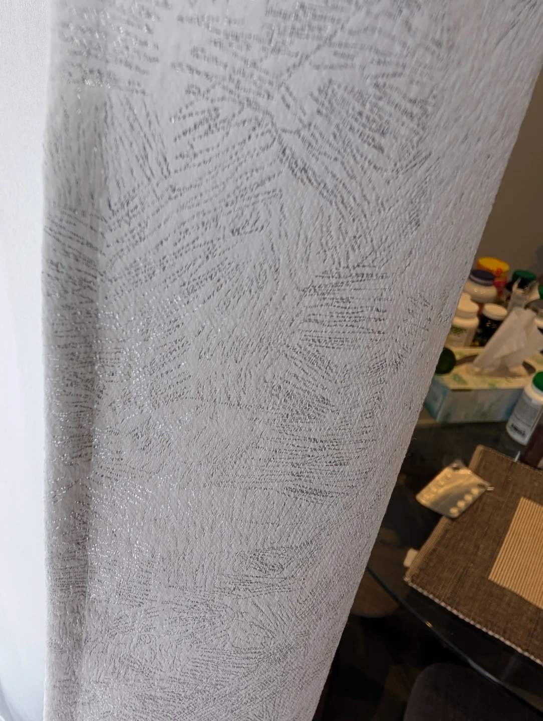 White Curtains with Silver Pattern