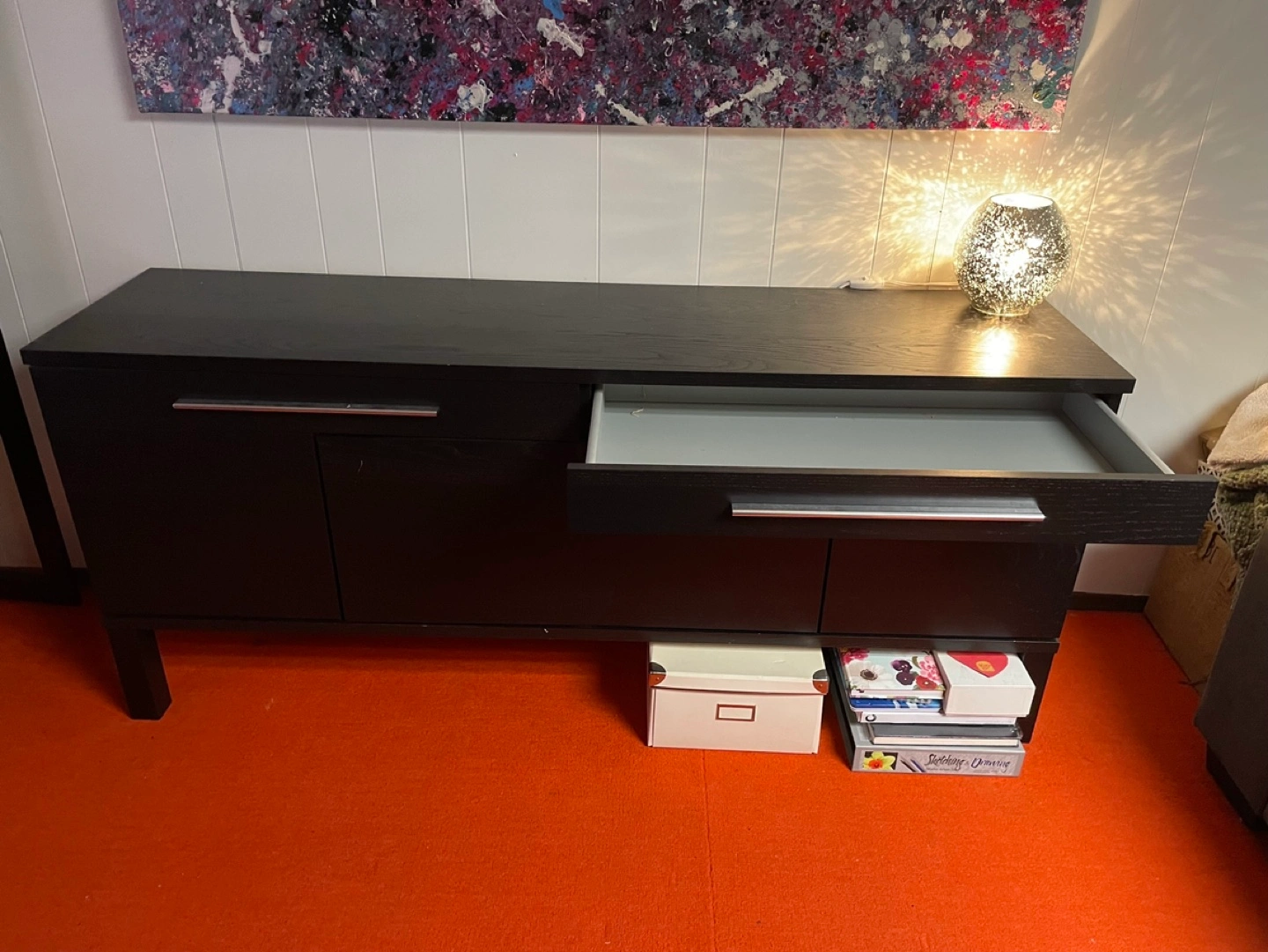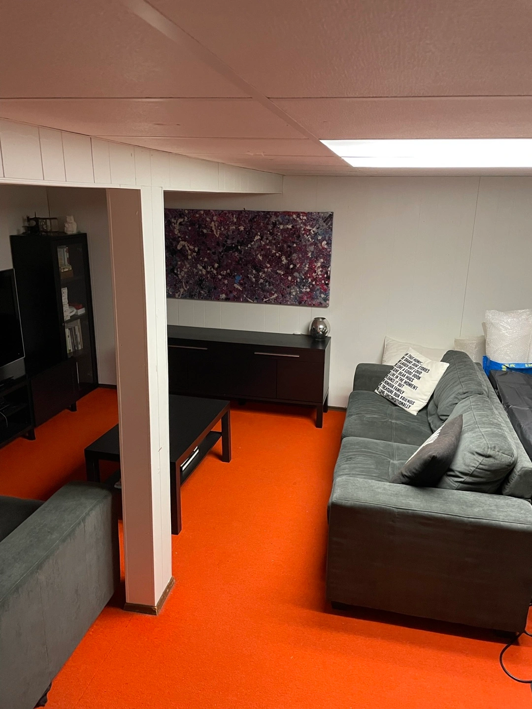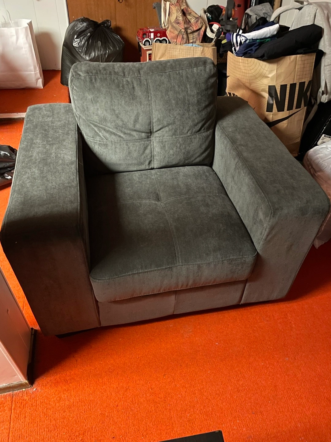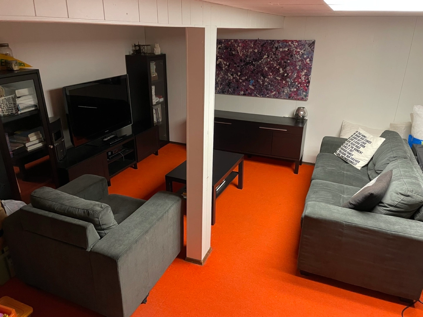 Full living room set up-sofa bed, chair, cabinets, tv, etc