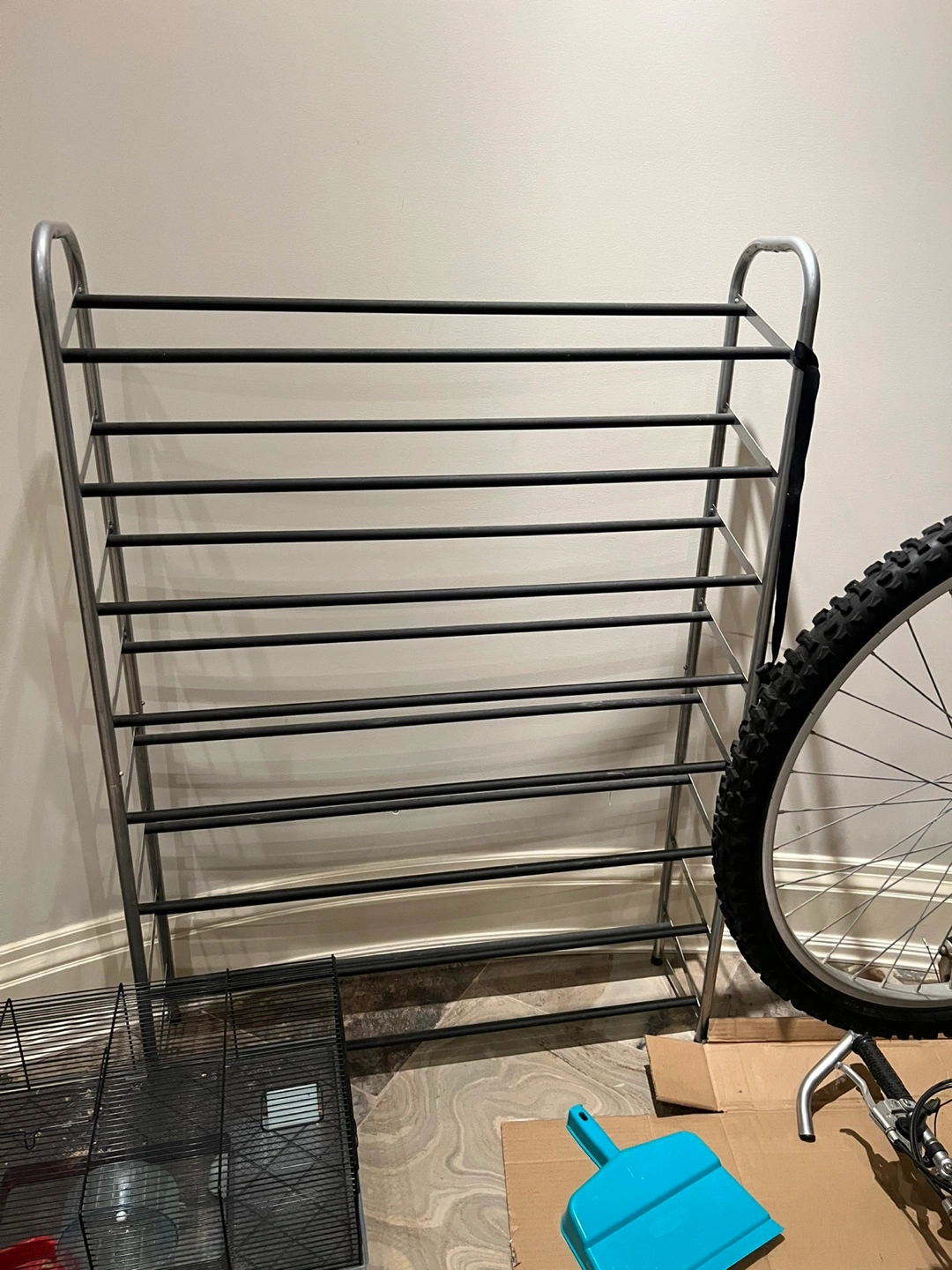 Selling a shoe rack with a metal frame. It has multiple tiers for storing lots of shoes! Great for keeping your entryway or closet organized