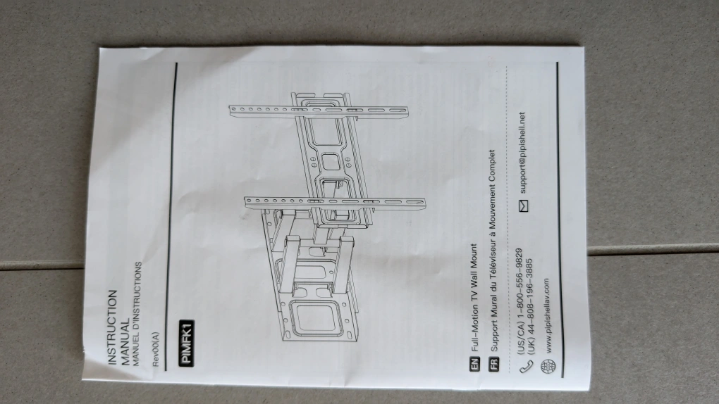 Selling a full-motion TV wall mount, model PIMFK1. It comes with the instruction manual and all the components you see in the photos. It's in great shape and ready to use