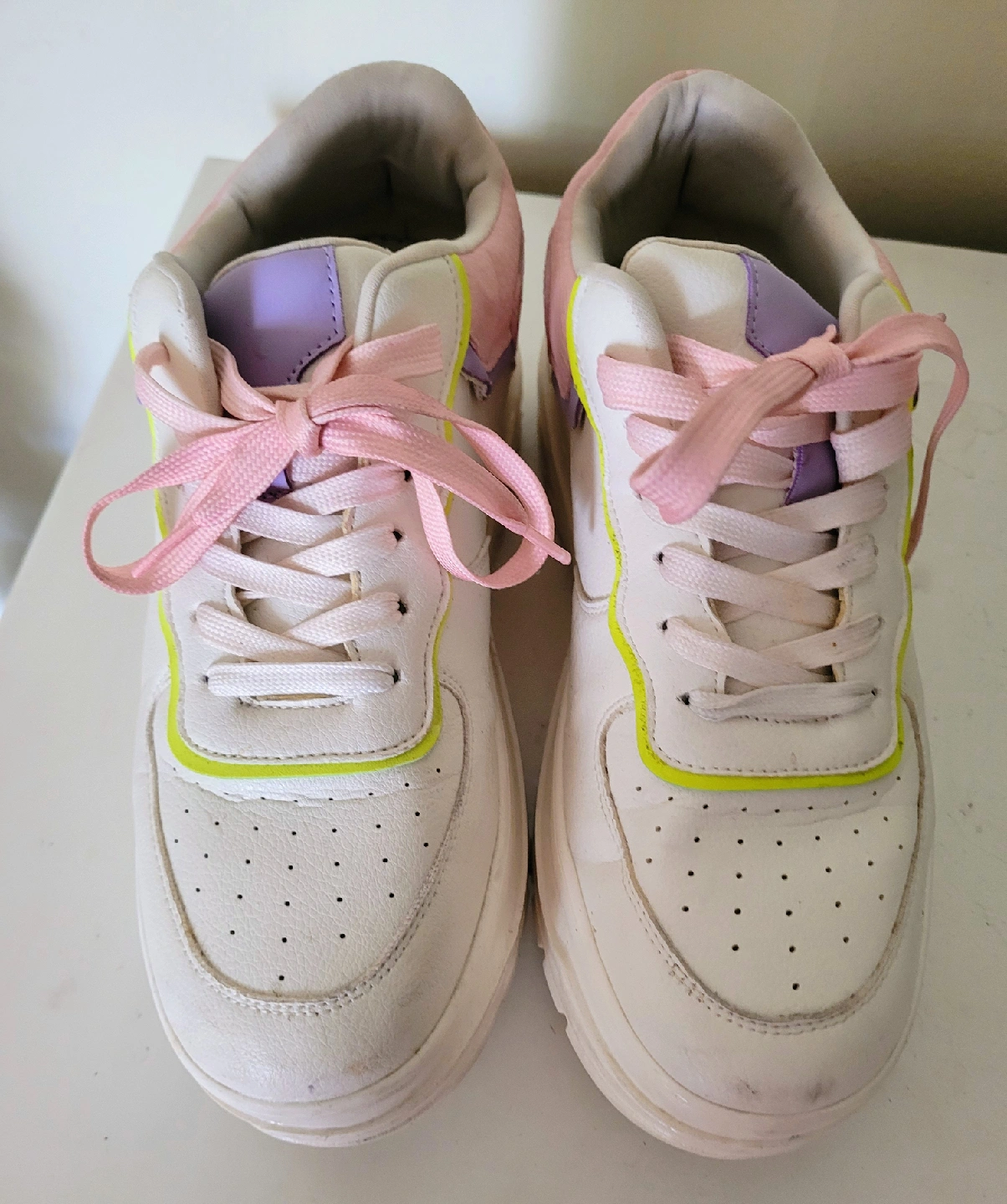 1000+Step into style with these Call It Spring vegan sustainable sneakers, a fun and funky addition to your footwear collection! These size 8 sneakers feature a playful mix of white, pink, and lilac, perfect for adding a pop of colour to any outfit. These sneakers are new without the box. Key features include: * Brand: Call It Spring * Size: 8 * Material: Vegan and Sustainable * Colour: White, Pink, Lilac If you're seeing this ad, then yes, they're still available.