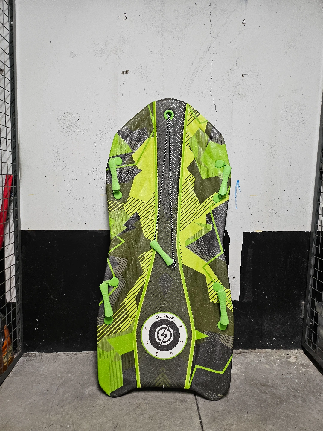 Snow sled in great condition. The sled features a unique green and black design with handles for a secure grip. Perfect for kids and adults alike to enjoy some snowy adventures