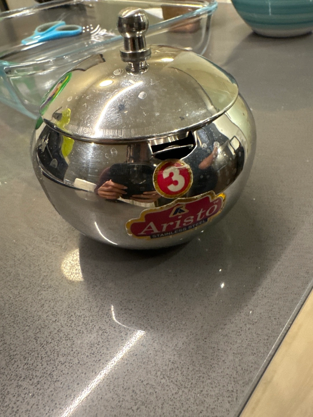 690Selling an Aristo stainless steel sugar bowl. It's in good condition and ready to add a touch of elegance to your kitchen or dining table!