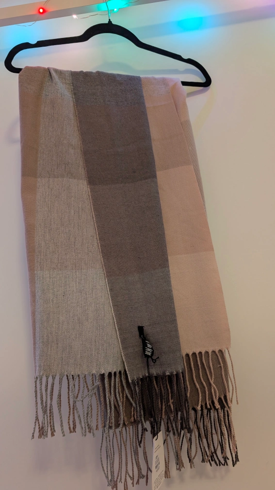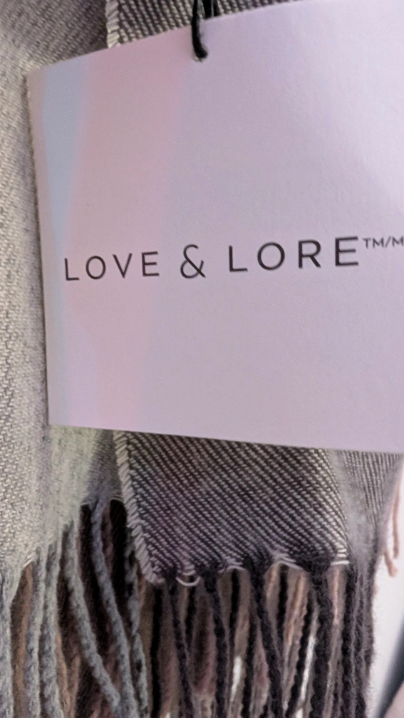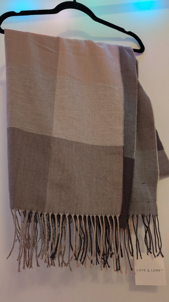 Cozy up with this Love & Lore scarf! It features a classic plaid pattern in neutral tones. Perfect for adding a touch of warmth and style to any outfit. The material feels soft and comfortable, making it ideal for chilly days.