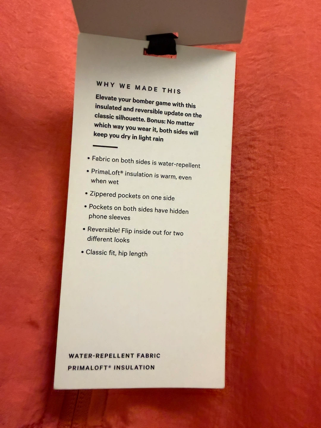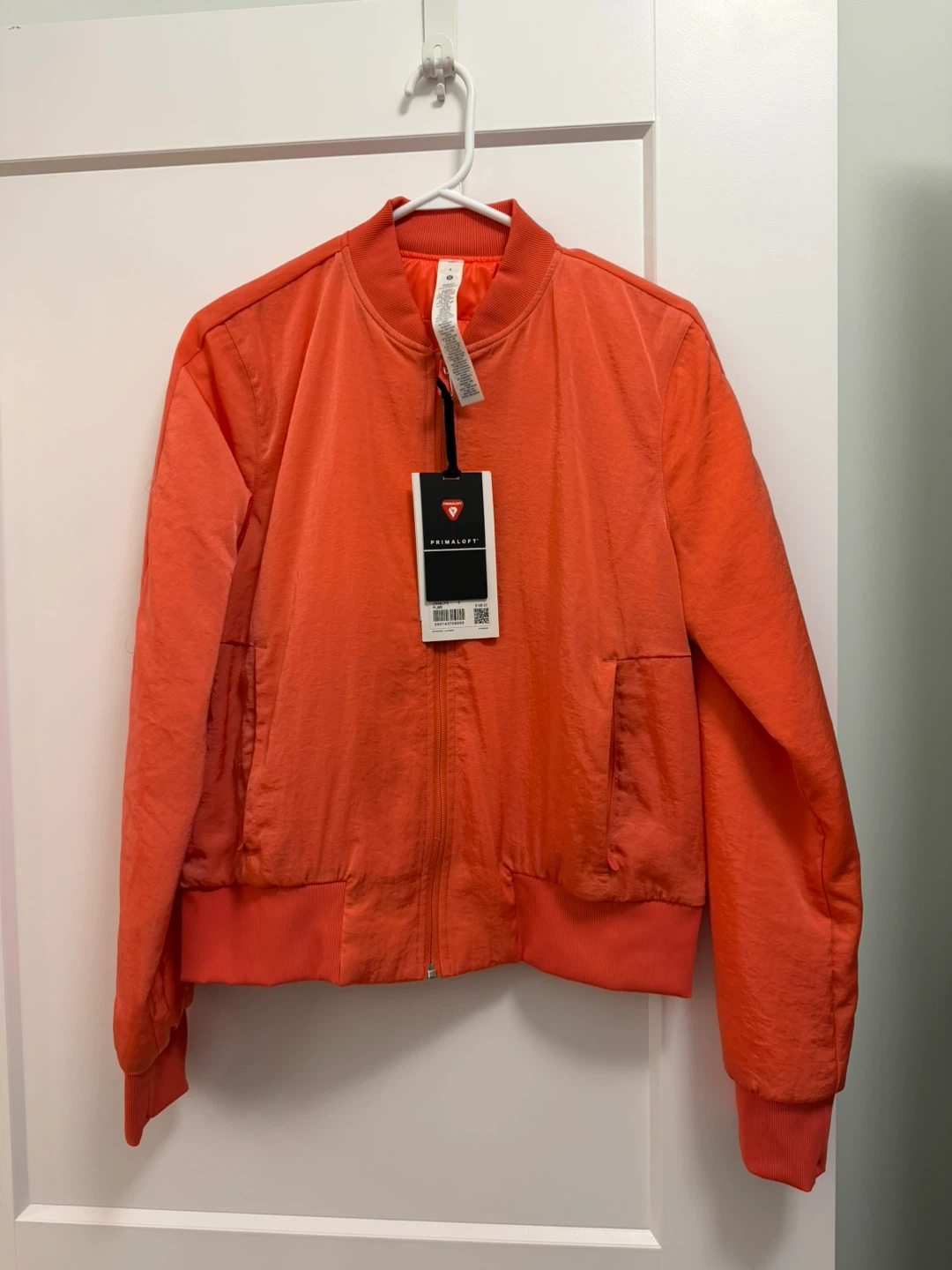 Selling a Lululemon Non-Stop Bomber jacket in size 8. It's a beautiful coral colour and features water-repellent fabric with PrimaLoft insulation to keep you warm and dry. Originally bought for $148 + taxes = $170