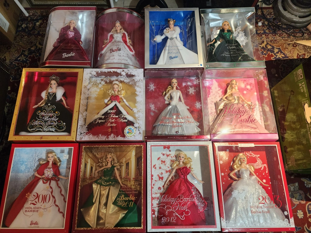 Add some sparkle to your collection with this amazing lot of Holiday Barbies from 2001-2022(2005 is missing) These dolls are in excellent condition, still in their original boxes, and ready to bring some festive cheer to your home. A must-have for any Barbie enthusiast! These dolls have been lovingly stored and cared for, so they're ready to find a new home with someone who appreciates their beauty.